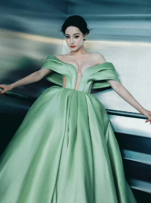 迪丽热巴的这套绿色礼服,感觉很可以!