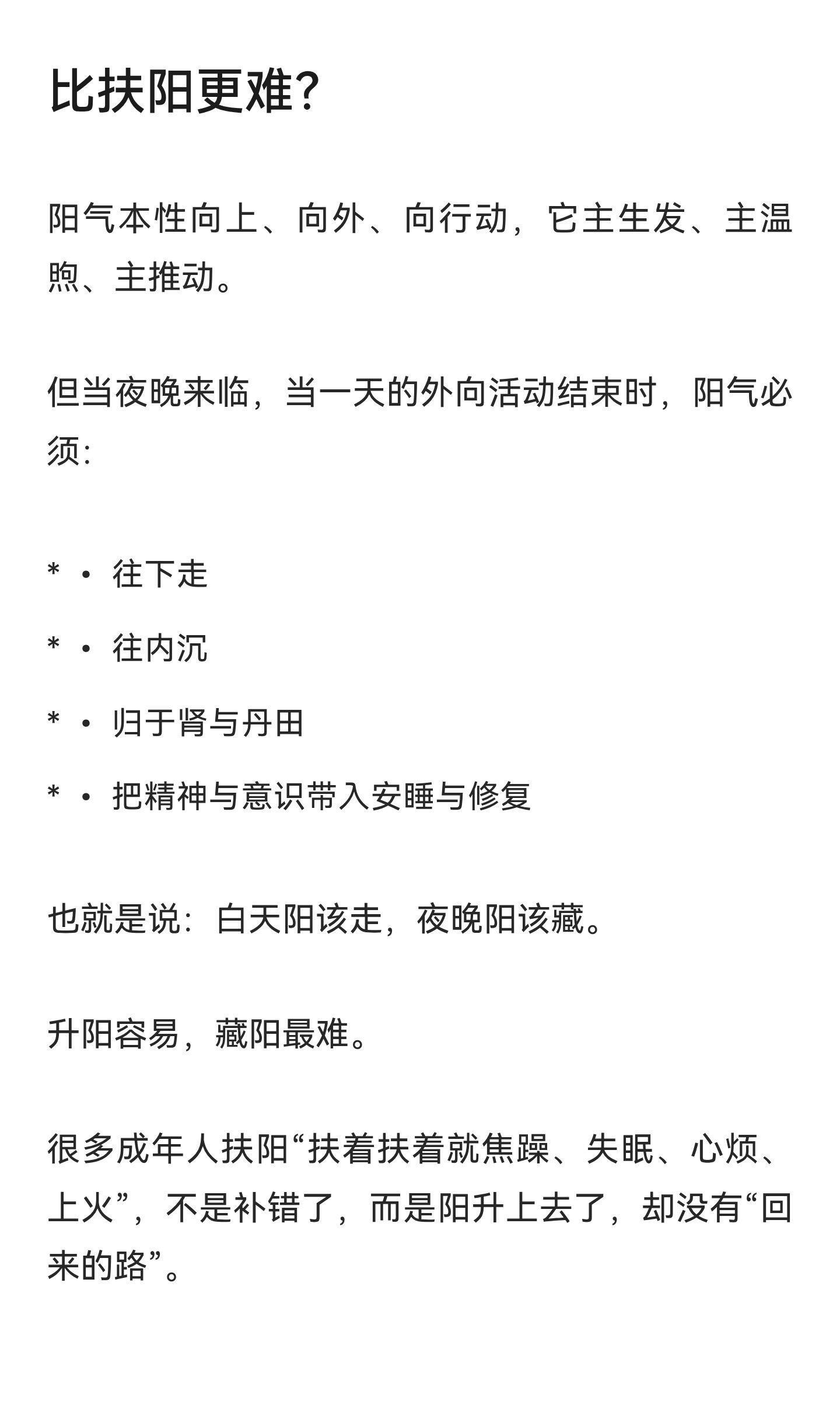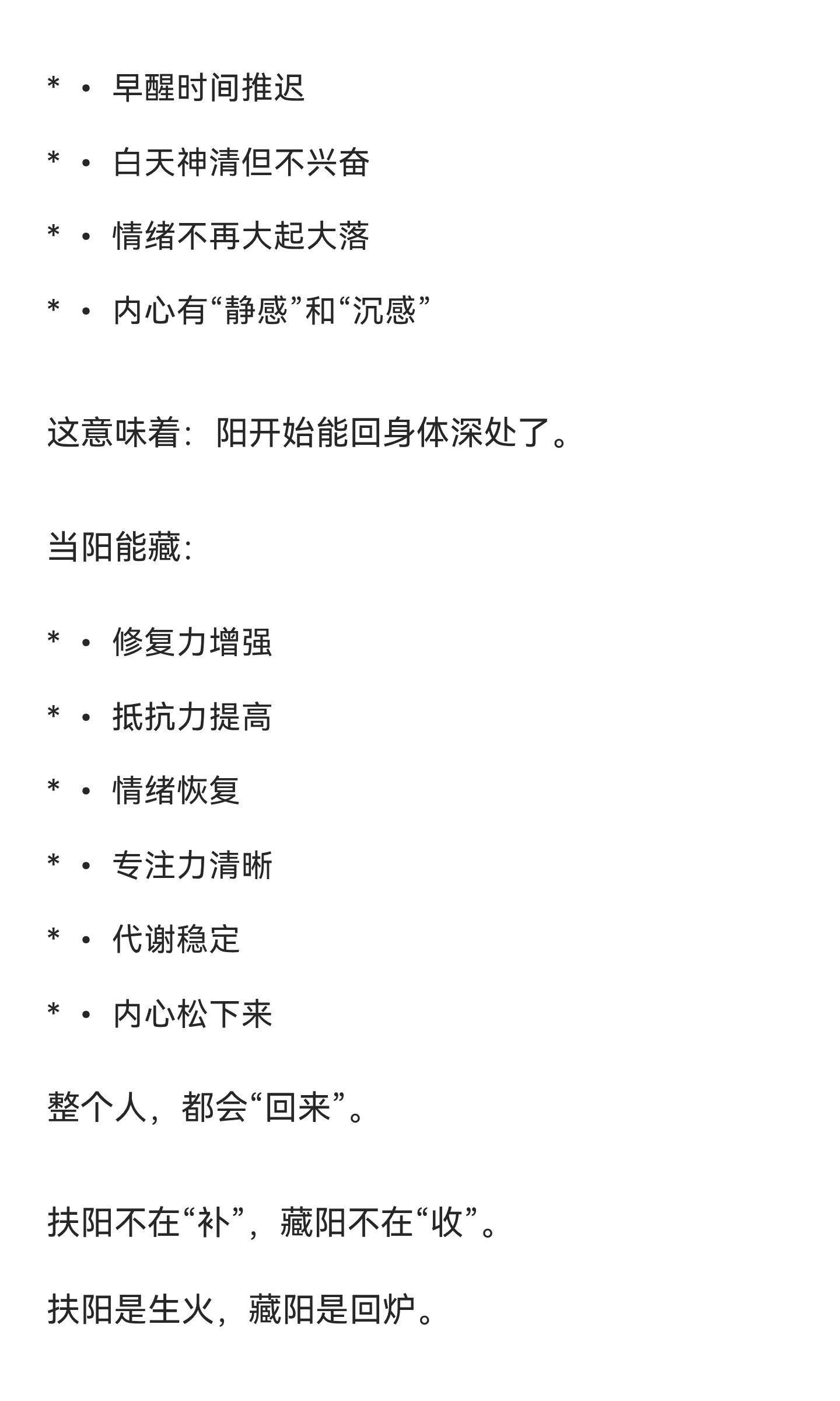 扶阳最难的不是补阳,而是让阳气回到身体深藏阳是中医调理的关键,通过引阳下行、安心神、微敛火候,让阳气稳定回肾,而非简单补阳或收火。藏阳成功后,身体修复力增强,情绪稳定,代谢平衡,整体健康提升。