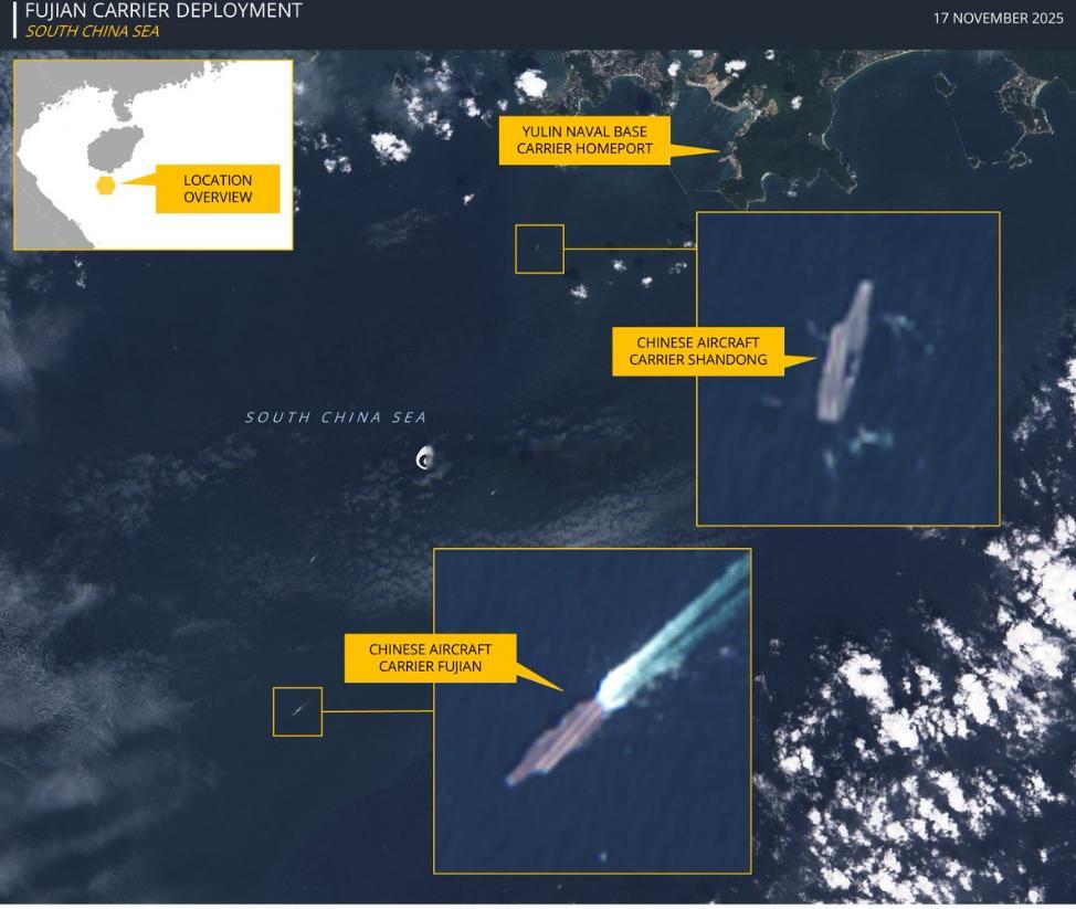 11月17日,福建舰和山东舰都已经离开了榆林海军基地。山东舰刚离开港口,周围还有