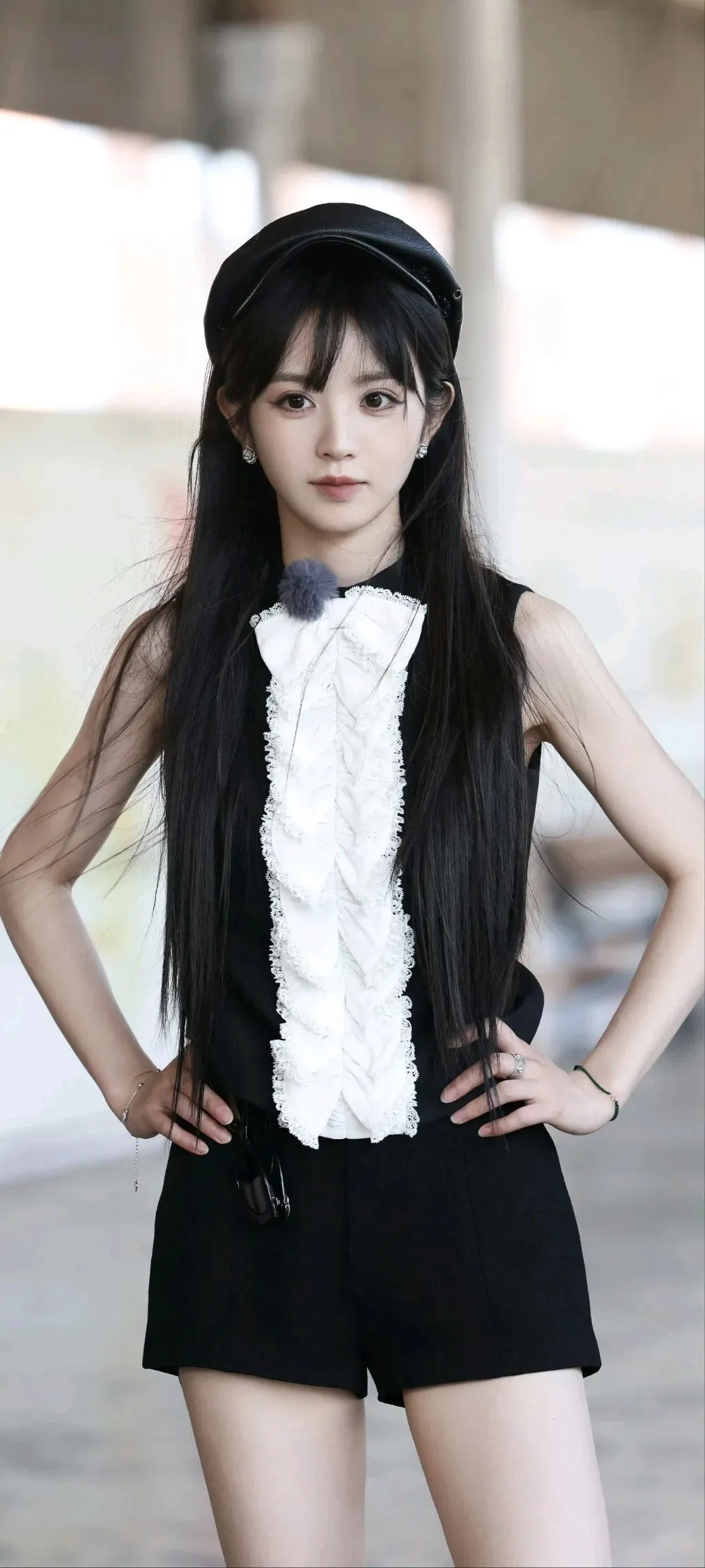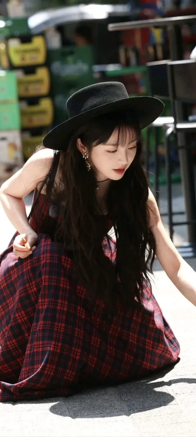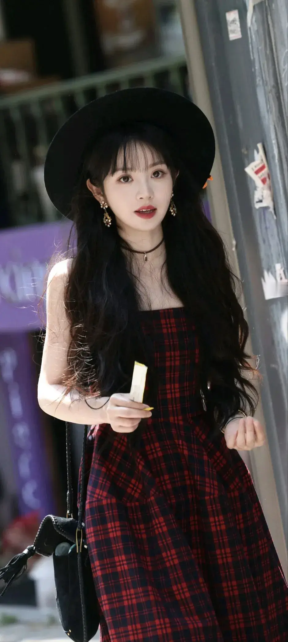 田曦薇高清美照分享|一个女孩在街头摆姿势,穿着酷酷的服装。