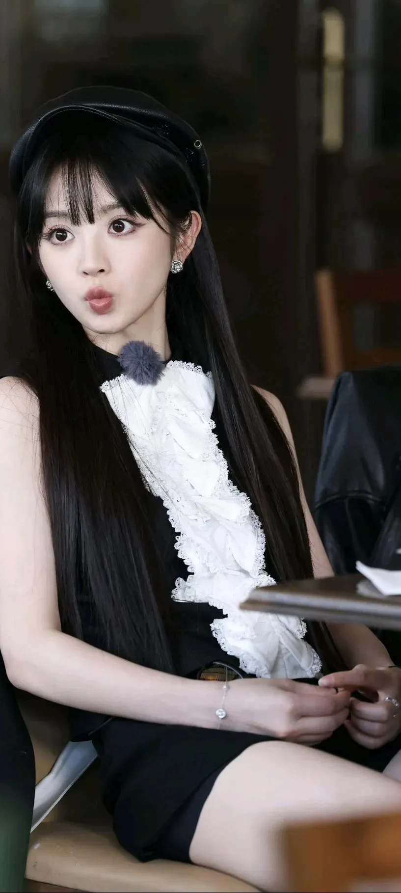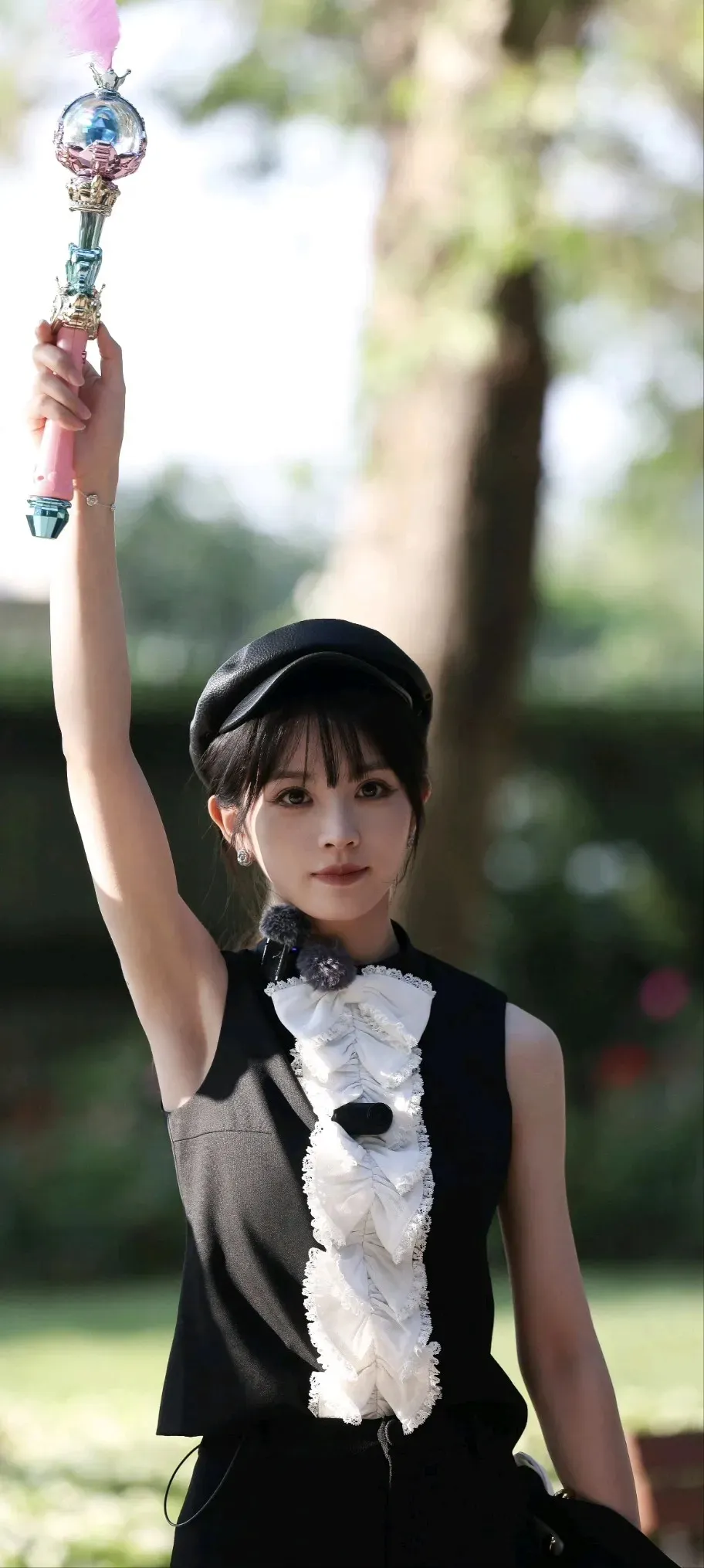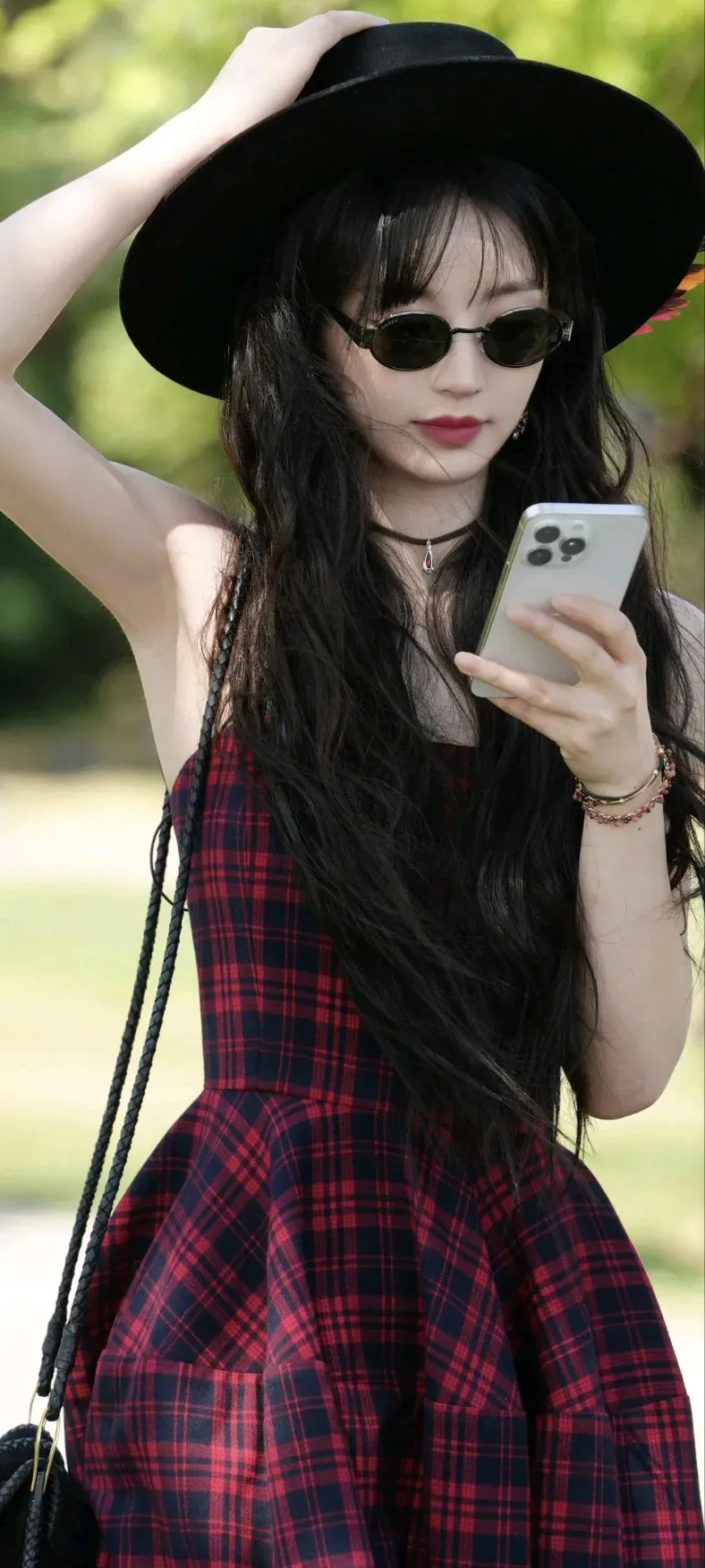 田曦薇高清美照分享|一个女孩在街头摆姿势,穿着酷酷的服装。