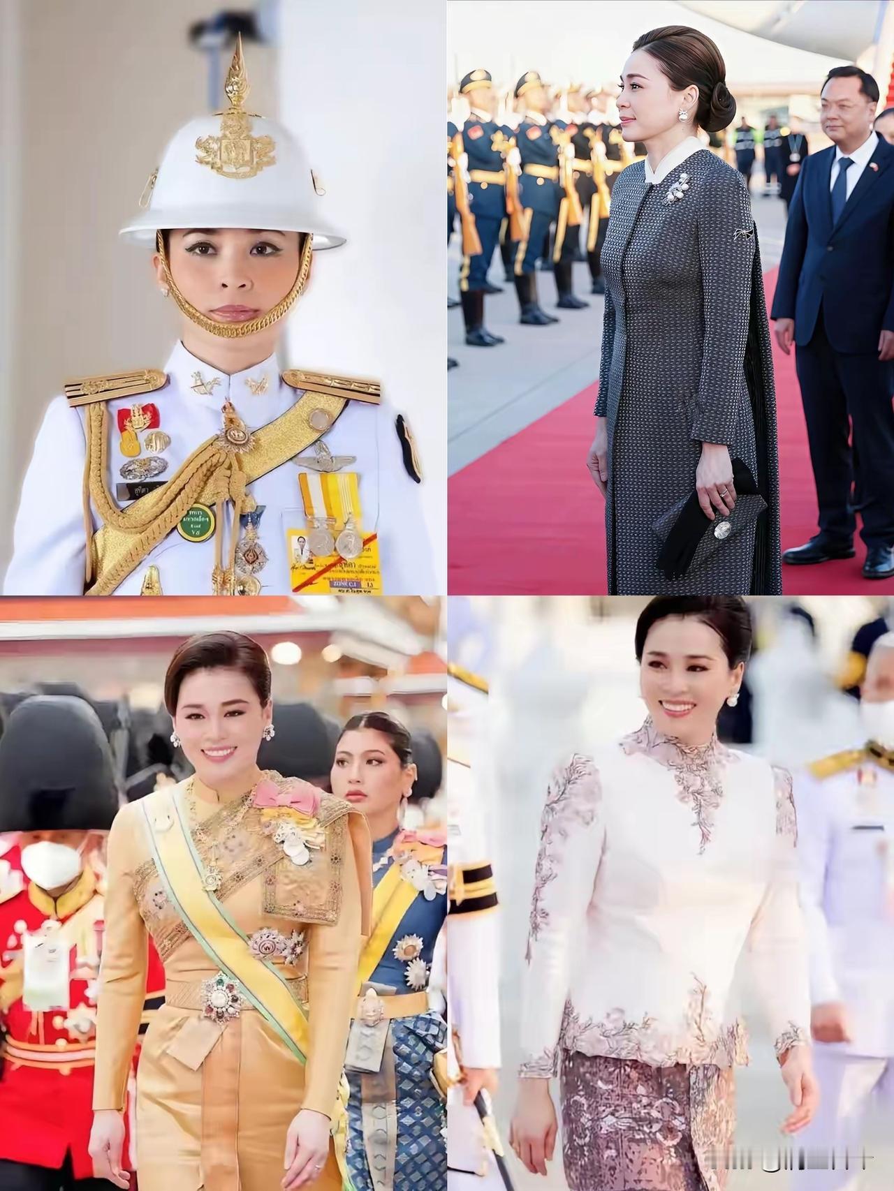 泰国王后素提达真是个传奇人物。她47岁,有华裔血统,妈妈曾是空姐。她大学学传播学,毕业后当了空姐,30岁转行,35岁加入国王护卫队保护国王。后来被任命为上将,还获王室称号,41岁成为王后。 当地时间6月3日,泰王陪她出席47岁生辰皇家仪式,她身着紫色传统礼服,佩戴各种配饰,尽显华贵。 她出身普通,却能在有三个前妻的情况下上位。她目标明确,不是恋爱脑,能把国王一家管理得服服帖帖,连军方都力挺她,不得不让人佩服。