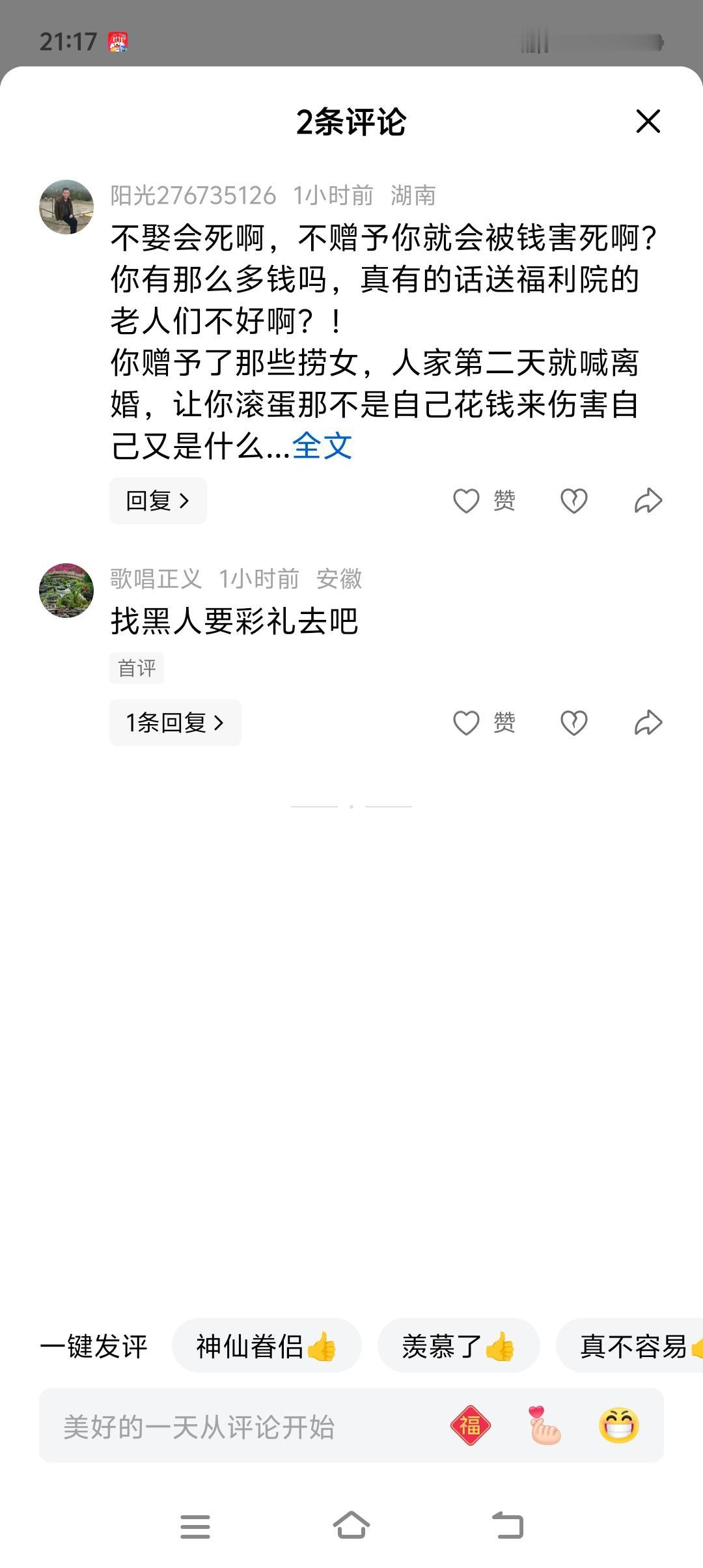 头条上都说了,大城市是没有彩礼的!嫁给外国人的,大多数好像也是大城市的女孩子。她们嫁给中国人,同样也不会要彩礼!现在终于明白,为什么你们对中国女孩嫁给外国人如此耿耿于怀了!因为不要彩礼的女孩,嫁给了外国人,恰恰动了你们的蛋糕!可是你也不想一想,就你这德性这些不要彩礼的大城市女孩,真的看得上你吗?