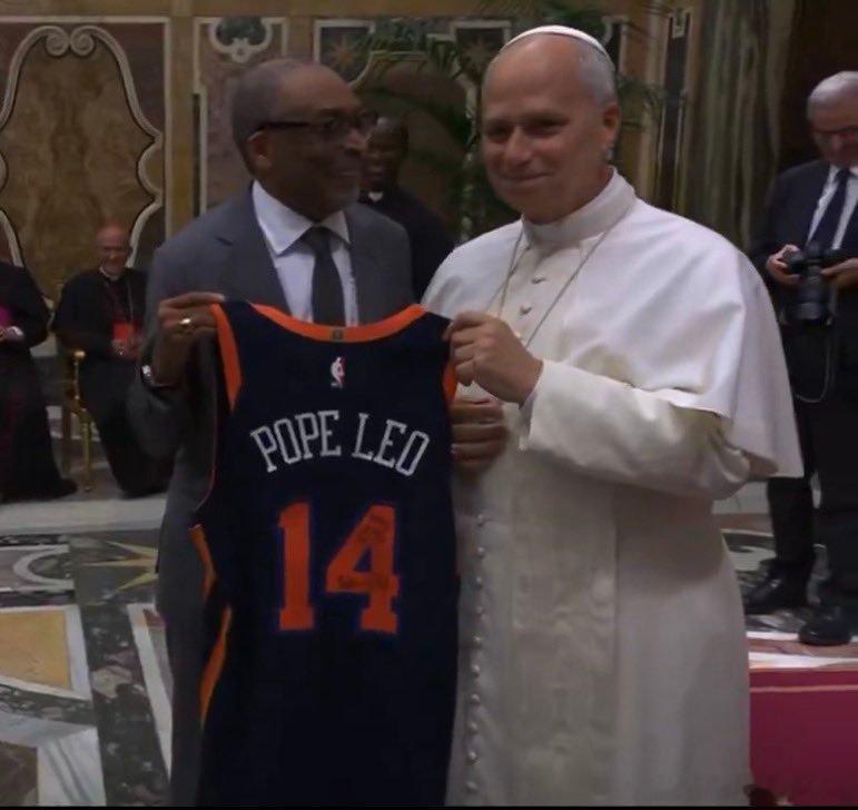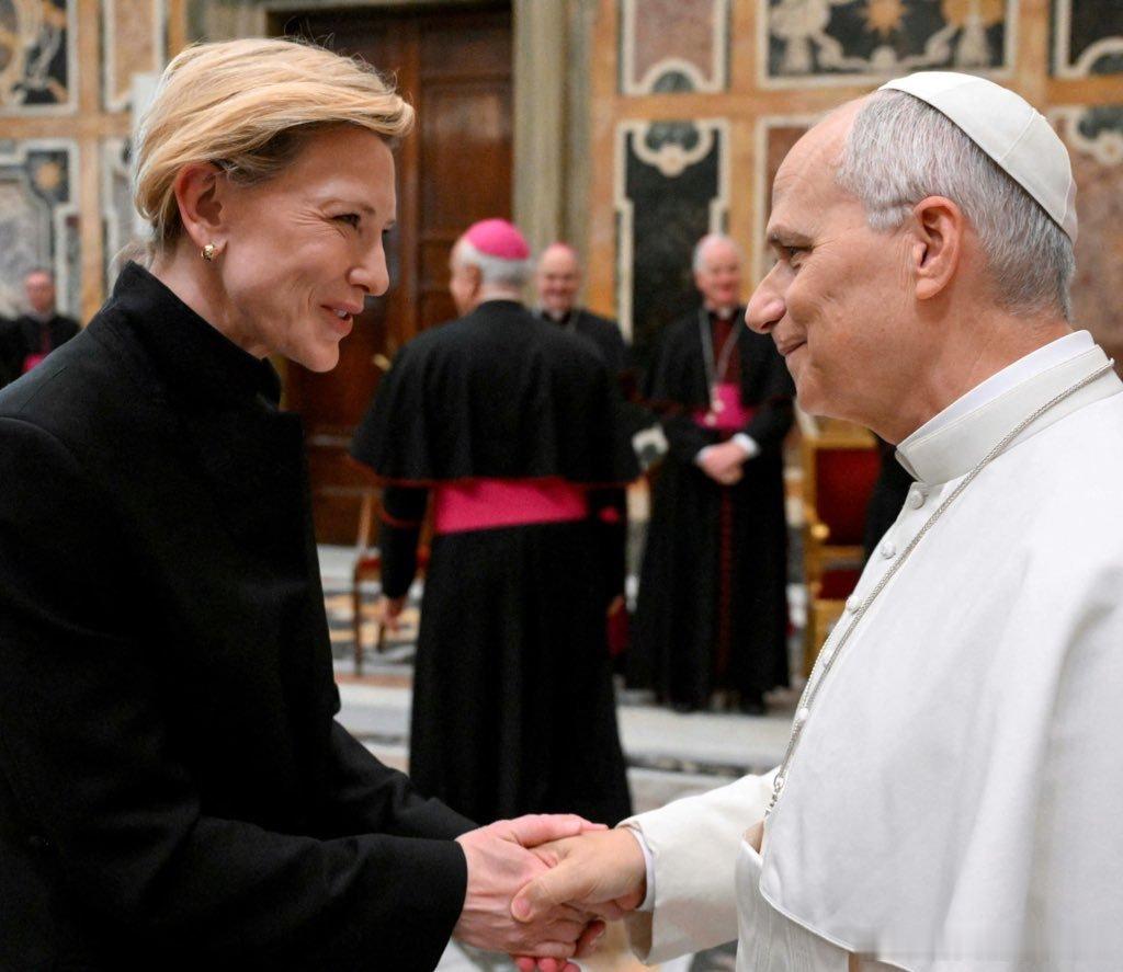 教皇利奥十四世11月15日在梵蒂冈接见了凯特·布兰切特、斯派克·李、莫妮卡·贝鲁