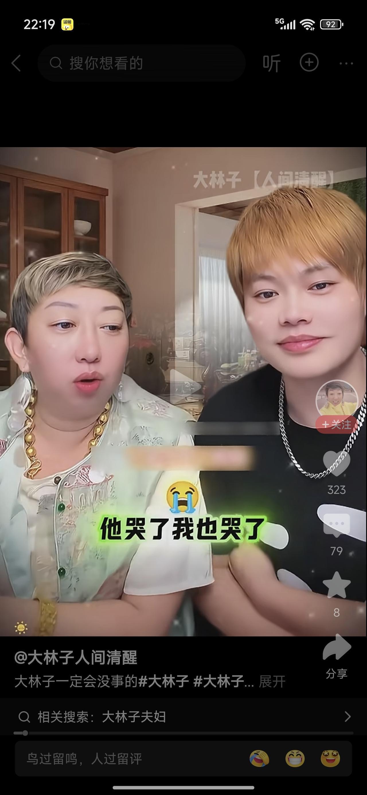大林子好像又生病了。没出结果,还得送活检。反正就是有问题才去看的。两口子都哭了。 你说这么有趣的灵魂,让她多活些年不行吗? 他俩老好玩了。粉丝问哪里出问题了,他老公说六斤七两的地方。也没明白。 以前她子宫癌,切了。当不上妈妈。王亮兵正好有两个可爱的孩子,弥补了她的遗憾。 现在又有乳房的问题,老天爷对她太狠了。 有钱的又不止她一个。干嘛让她这么苦啊!