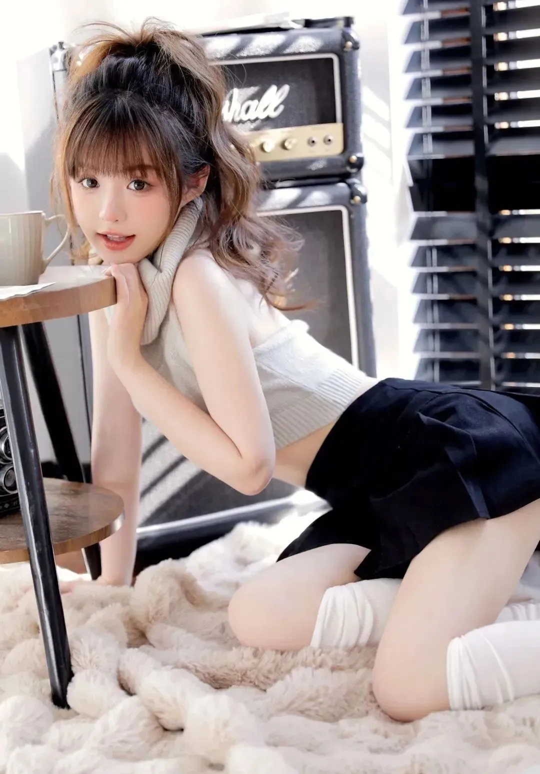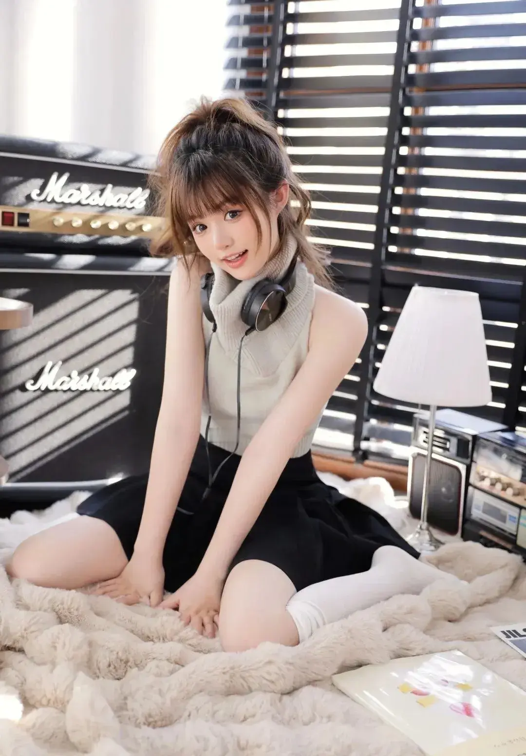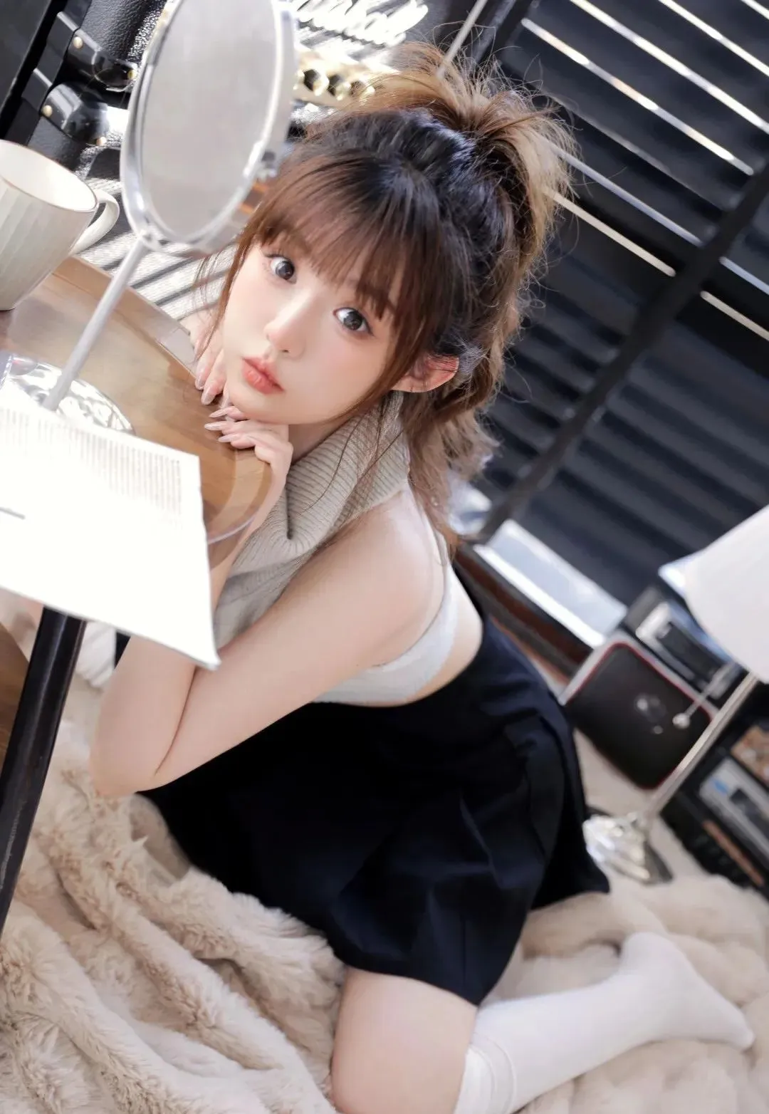 静谧空间中,玥儿目光迷离,似藏着万千心事。她的丝袜美腿随意交叠,细腻纹...
