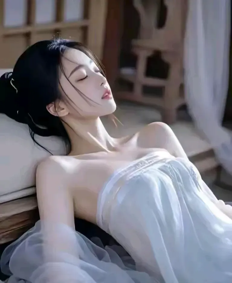 美女写真 优雅躺卧,白裙飘飘,自然光下更显柔美。🌿✨#、😜