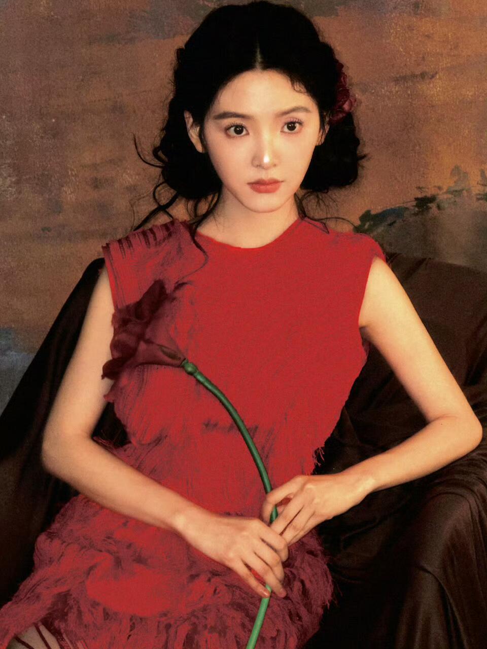 刘亦菲把死亡玫粉穿出了定制款的感觉,这种颜色普通人穿上分分钟黑三度,她居然能穿出