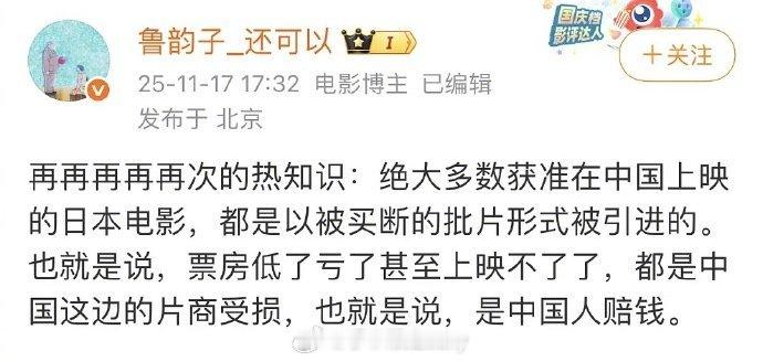 这个是真不知道“绝大多数获准在内地上映的日本电影都是买断片,引进的片商自负盈亏”