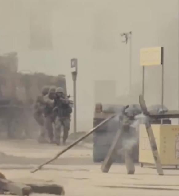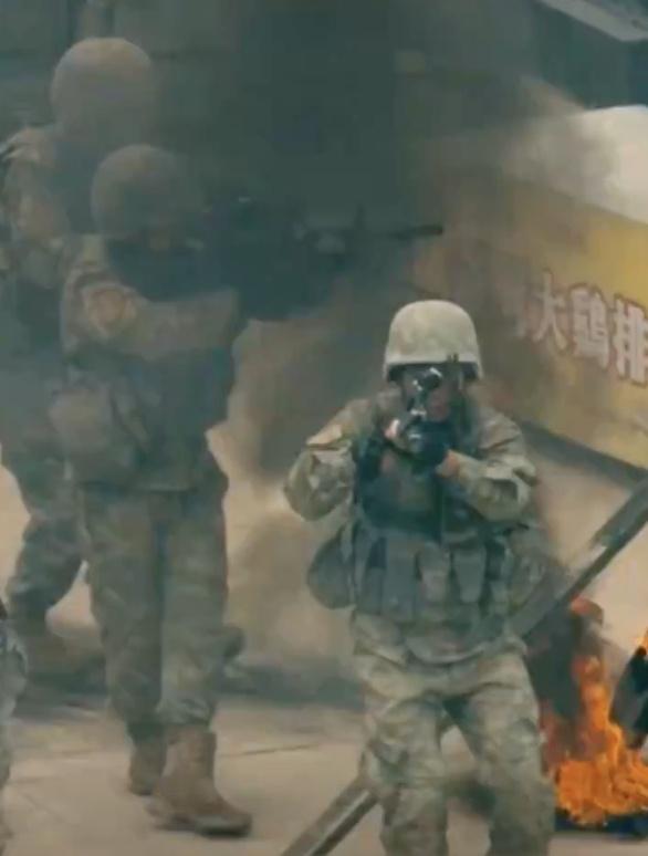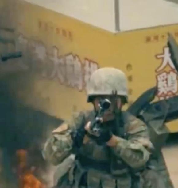 解放军巷战演习 旁边小吃摊亮了。日前,解放军在进行巷战演习时,背景中一处小吃摊招牌上的繁体字“大鷄排”引发大量关注。