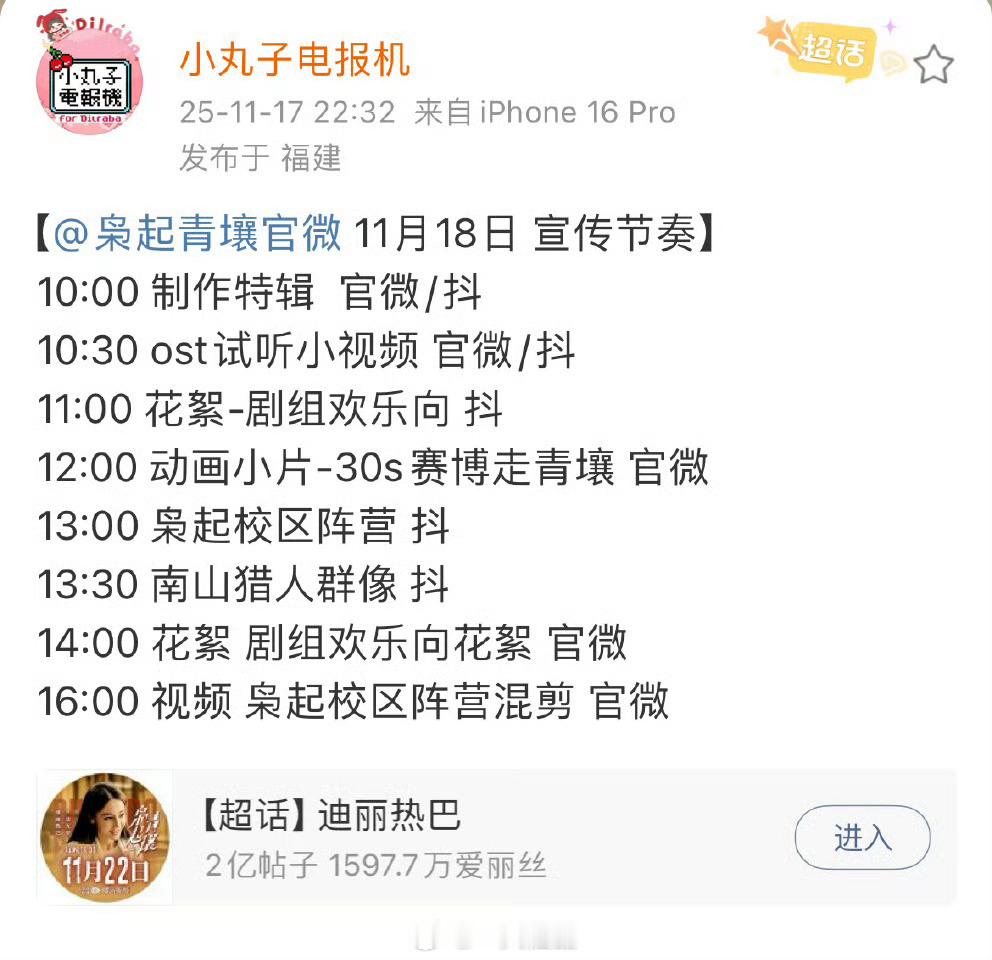迪丽热巴《枭起青壤》今日宣传节奏🈶喔噻喔噻喔噻,每一个都好充满了惊喜呀,期待期待