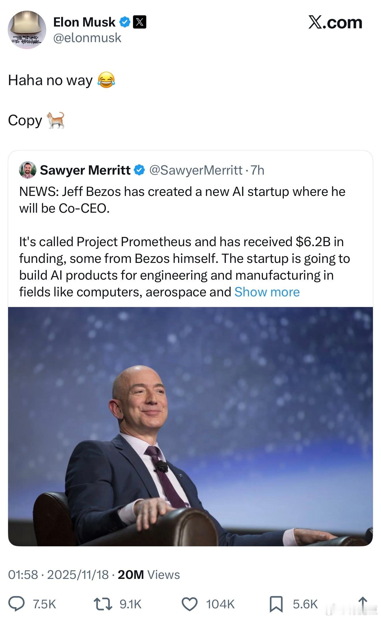 11 月 14 号祝贺蓝色起源贝索斯11 月 18 号又说人家 Copy 🐈哈哈哈