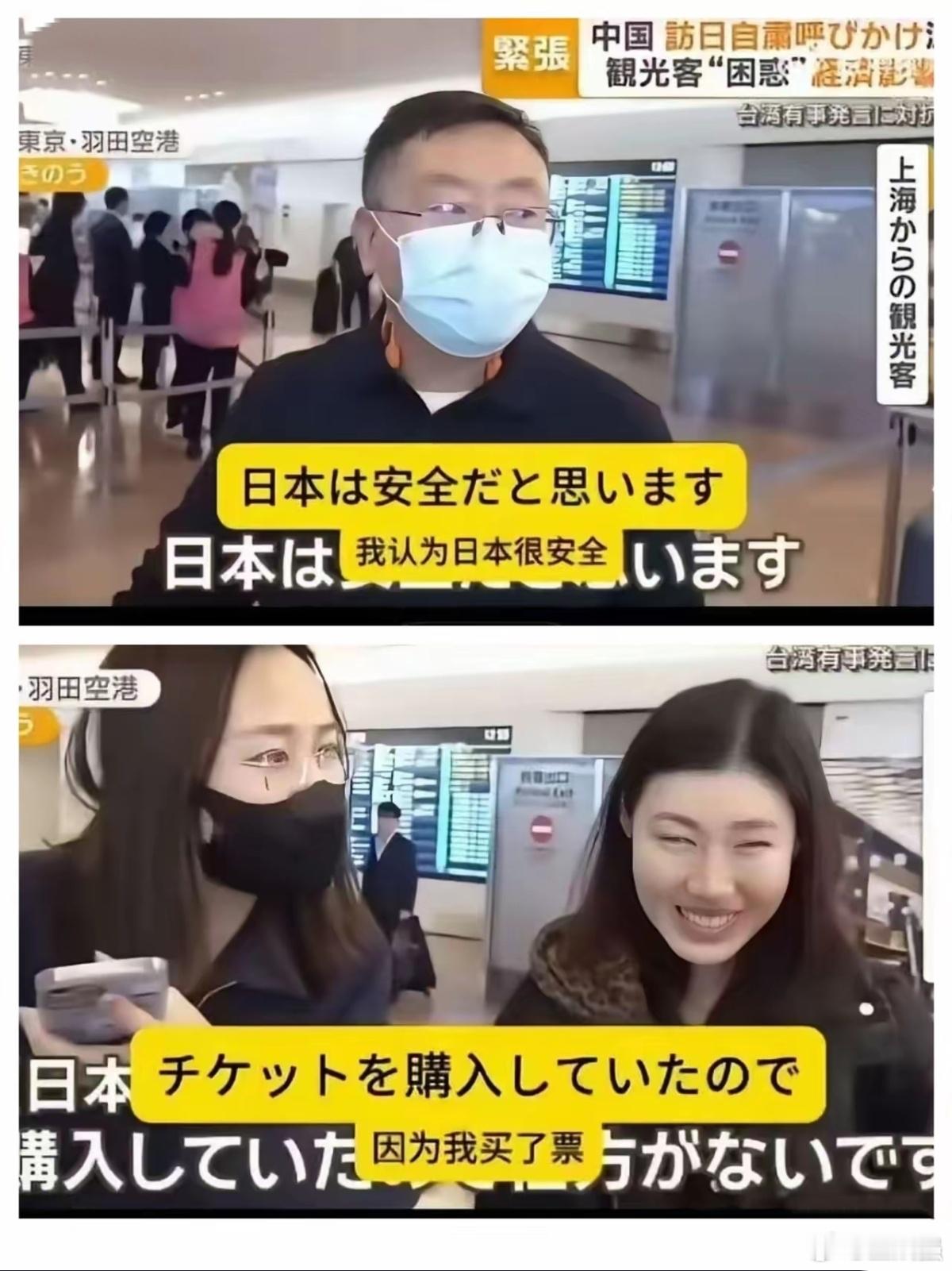 【看看这帮人!】在后,这帮人不仅完全不理会政府的提醒,还舔着脸在日媒镜头前声称:“我不在乎政府的呼吁““花钱是我自己的自由”“我认为日本很安全。”你们是来自中国,当下日本正“有事”,日本正凶恶挑衅中国!当着日媒舔日怼本国政府,丢人现眼!现在记住了:自由从来不是“不管不顾”的借口!一旦出事别找大使馆求助!政府的提醒可不是空穴来风,日本近期针对中国公民的犯罪案件增多,还有右翼的极端言论,这都是实打实的安全隐患。旅游自由的前提是安全,更是对自身国家立场的基本尊重,在日媒面前说这种话,无疑是给别人递了话柄。真正的自由是明辨是非后的理性选择,不是无视风险、不顾大局的任性。