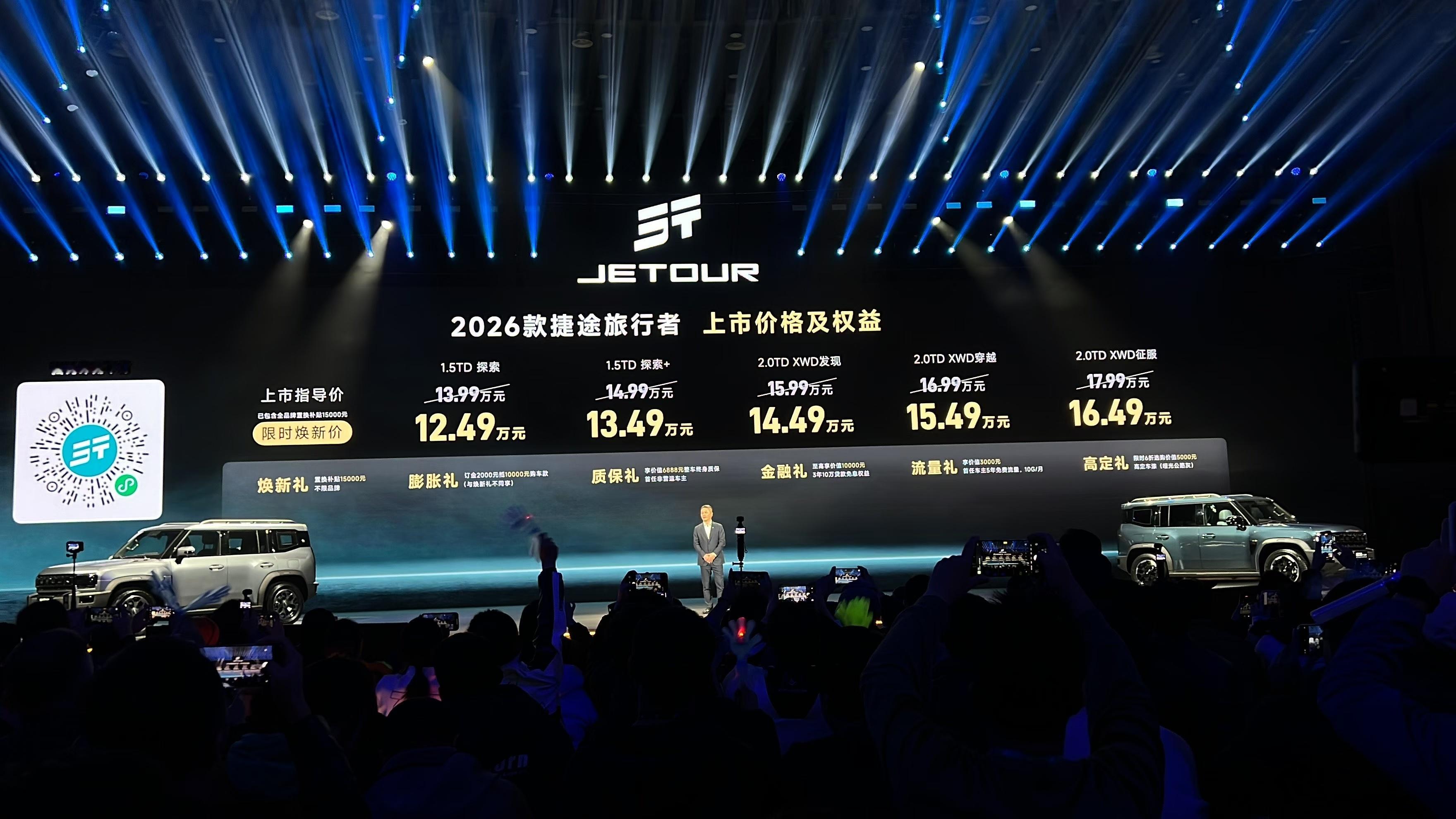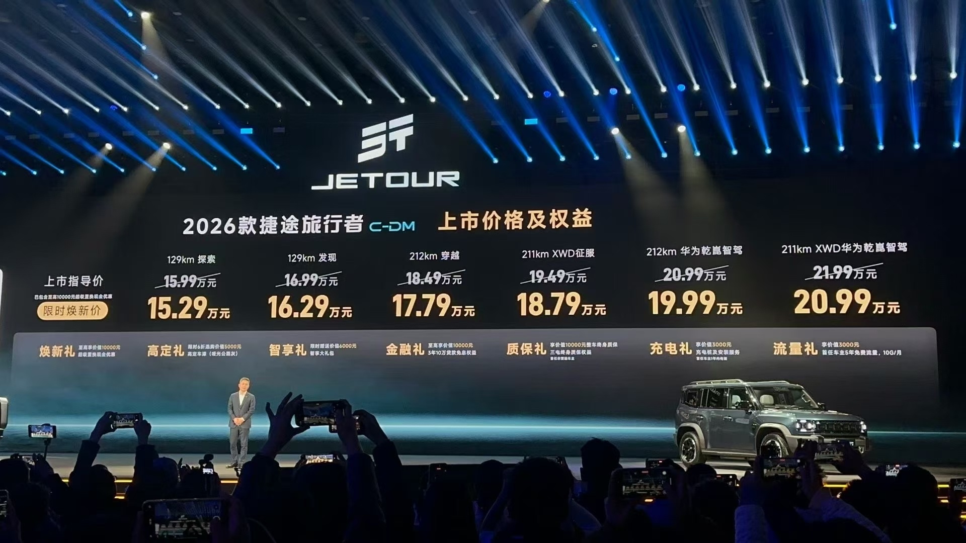 中国方盒子,世界冠军。捷途“行”LOGO,创下了全球唯一一个用时86个月达成200万辆销量的中国品牌。这一次,捷途旅行者双车“真行”。捷途旅行者C-DM(捷途山海T2),限时焕新价15.29万元—20.99万元,依托奇瑞鲲鹏超能混动C-DM技术,实现1300km超长综合续航,彻底告别里程焦虑;1.5TD发动机+P2+P2.5+P4三电机组成的四擎四驱系统,配合车身32000N·m/deg扭转刚度,无论是城市通勤还是越野探险,都能轻松应对,真正做到“想开、爱开、好开、敢开”。2026款捷途旅行者,限时焕新价12.49万元—16.49万元,搭载鲲鹏动力2.0TGDI,搭配行业唯一的XWD全自动智能四驱,车身扭转刚度31000N・m/deg,涉水深度700mm,让越野门槛大幅降低。