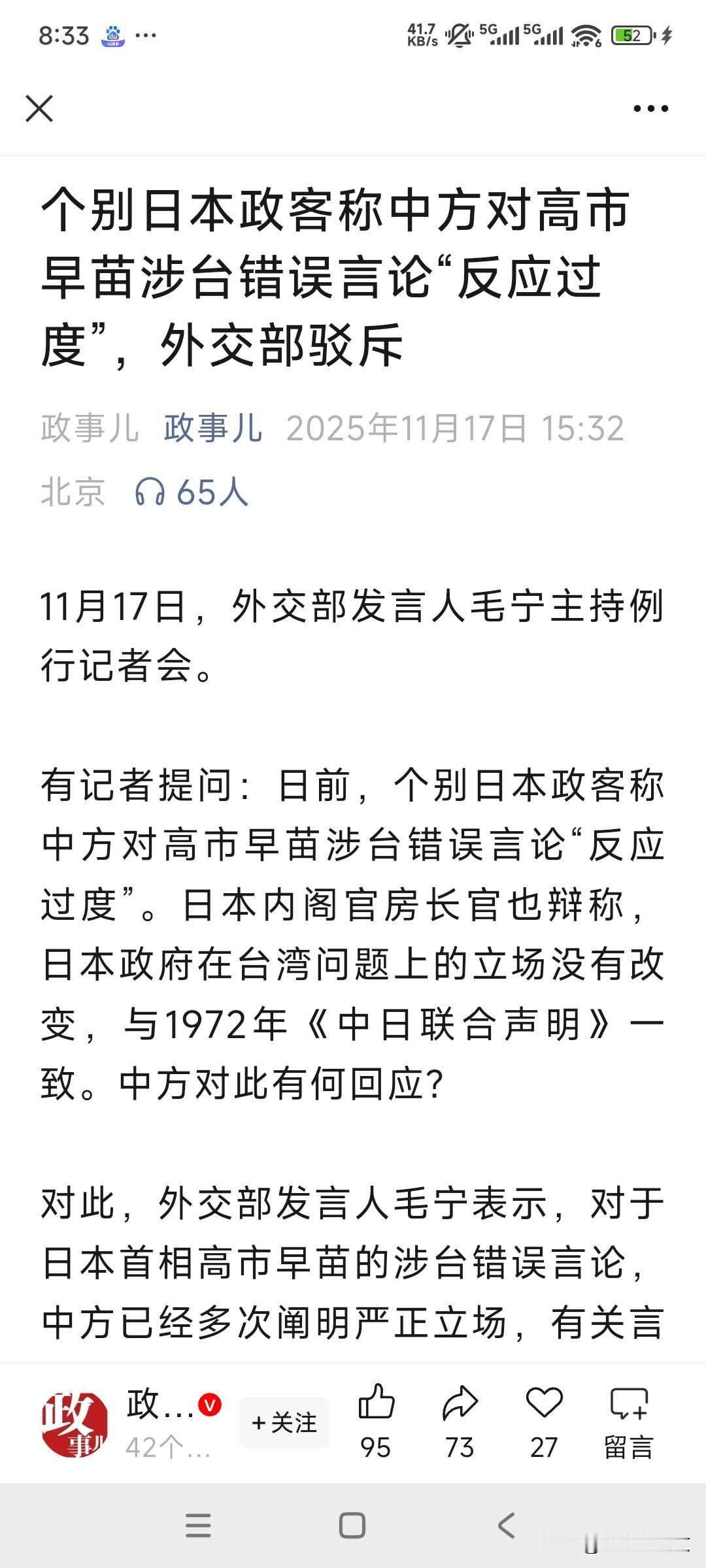 一直有一个很有意思的现象。 就是我们总是习惯于给别人家找一些应该认错的理由。 原本别人根本就不想认错,也不想撤回。人家很强硬。 但是我们总是想他为什么会说出这么一句强硬的话呀?是不是有其他的原因导致的呀?他应该收回这样的话。否则的话对你不好。对他好不好?这不是我方担心的问题。我们更应该考虑的是如何除了让他闭嘴之外,要让他感觉到疼。应该和平发展。 狗屁的睦邻友好!这都是意淫出来的东西,别自欺欺人了。 当军国主义思想抬头的时候,你唯一能做的就是不说话,给予迎头痛击。 跟鬼子你费什么口舌呢? 当初老蒋这不就是相信国联吗?最终的时候大半个中国丢了吧? 所以别信什么国联,别信什么外交调解。直接干就行了。眼下几大现象 社会奇异现象 社会反常现象 三大怪现象 中国新奇现象
