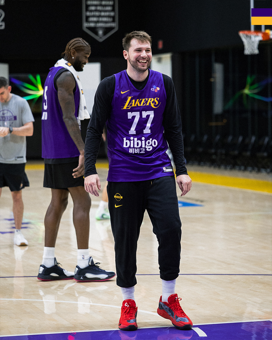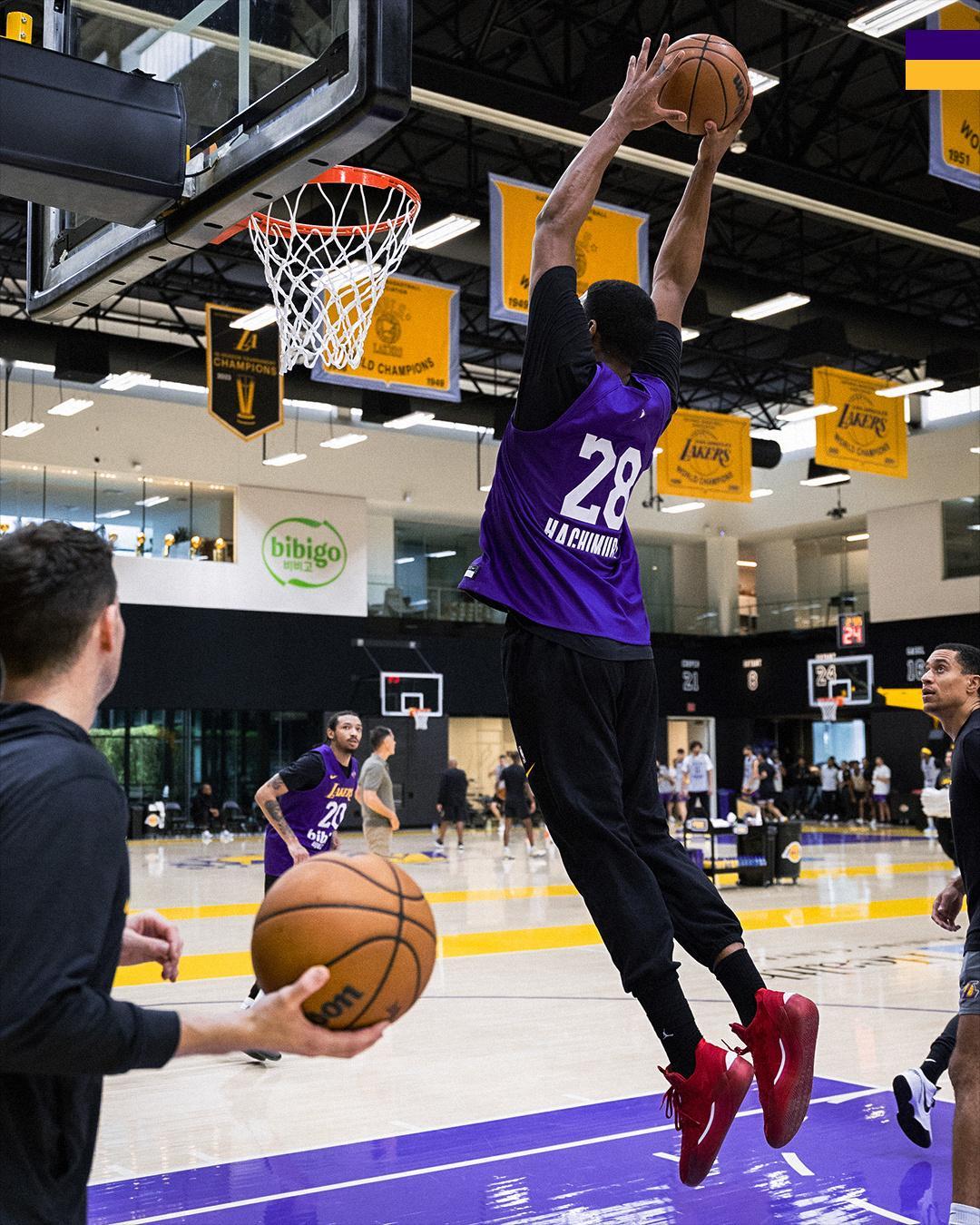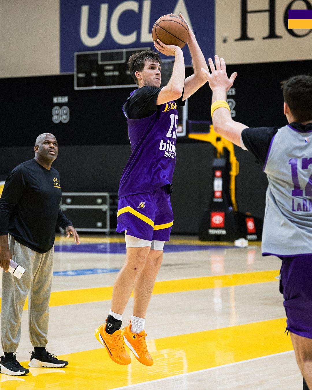 湖人全队备战明天对阵爵士,本周唯一一场比赛。