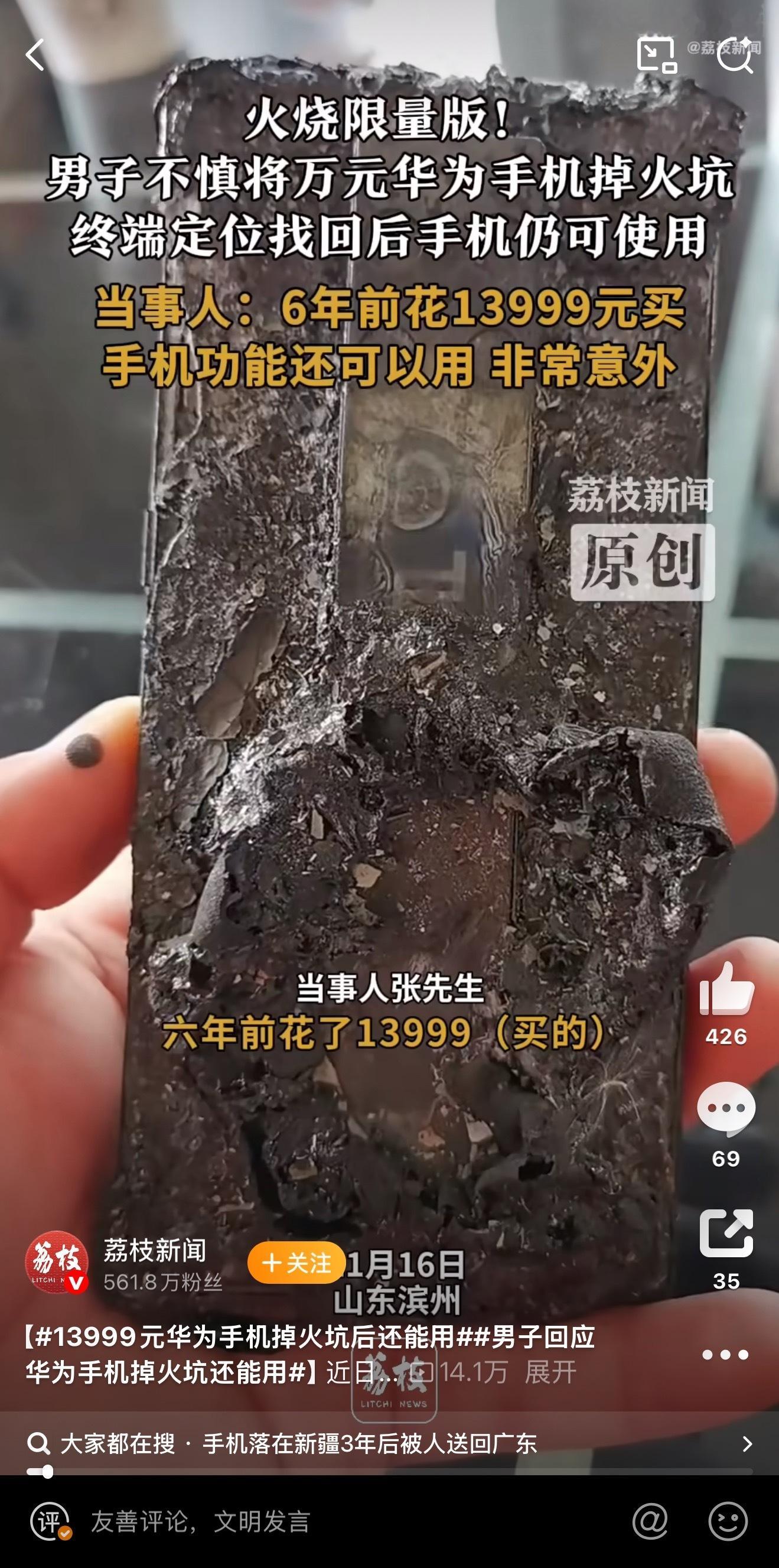 6年前的Mate30RS,掉火坑被烧了之后通过手机定位给找了回来,关键是居然还