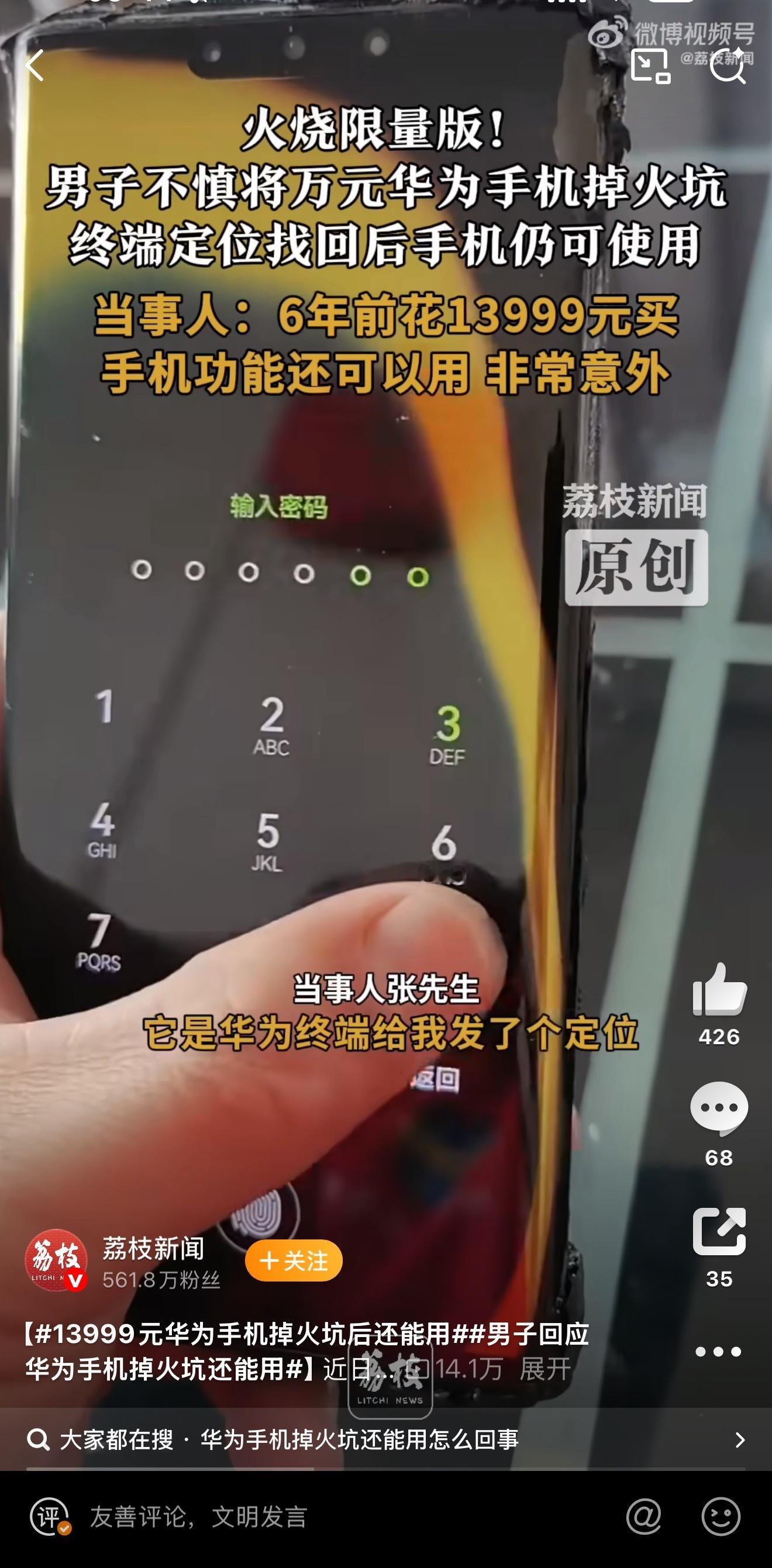 6年前的Mate30 RS,掉火坑被烧了之后通过手机定位给找了回来,关键是居然还能开机 半边屏幕可用,太强了真·火烧限定版