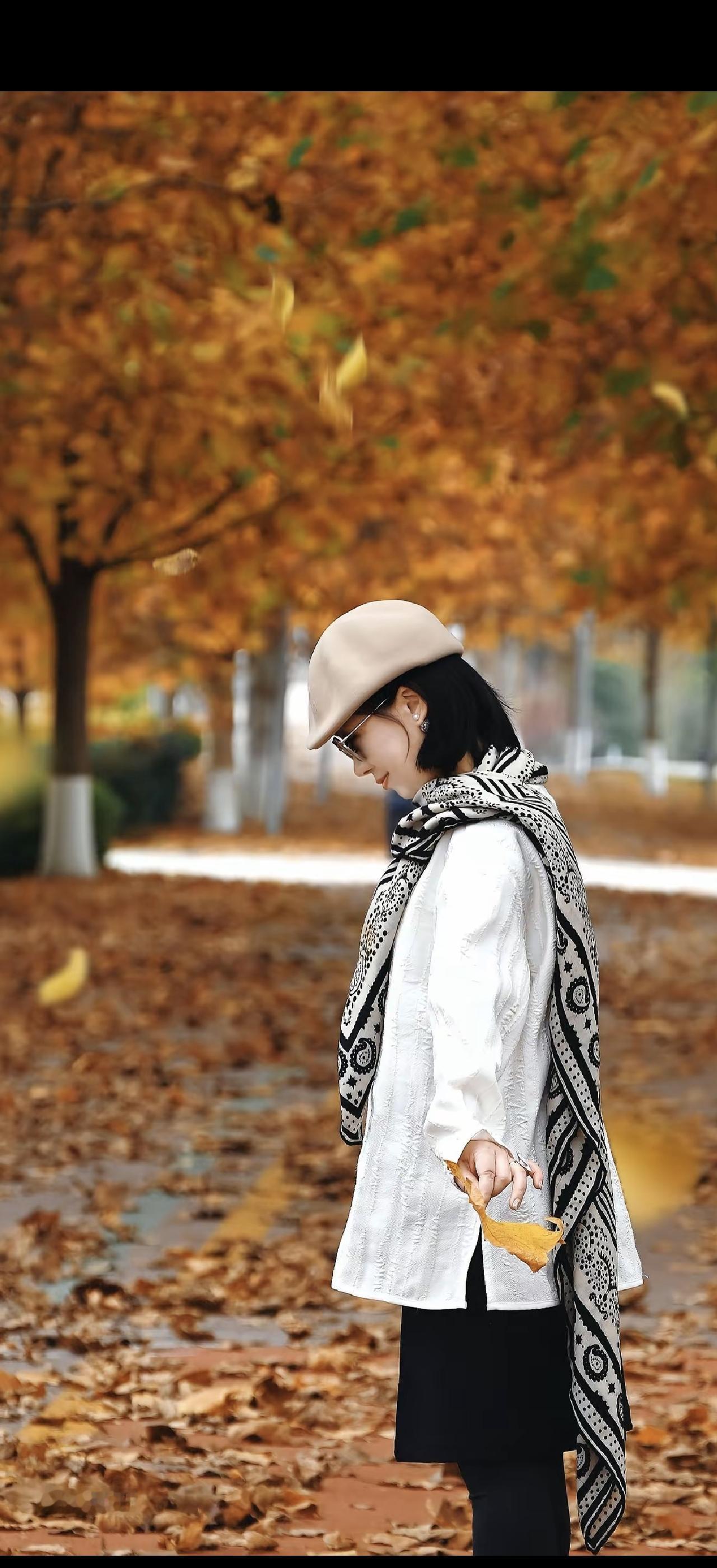秋日漫步,落叶飘零,时尚穿搭,温暖时光。