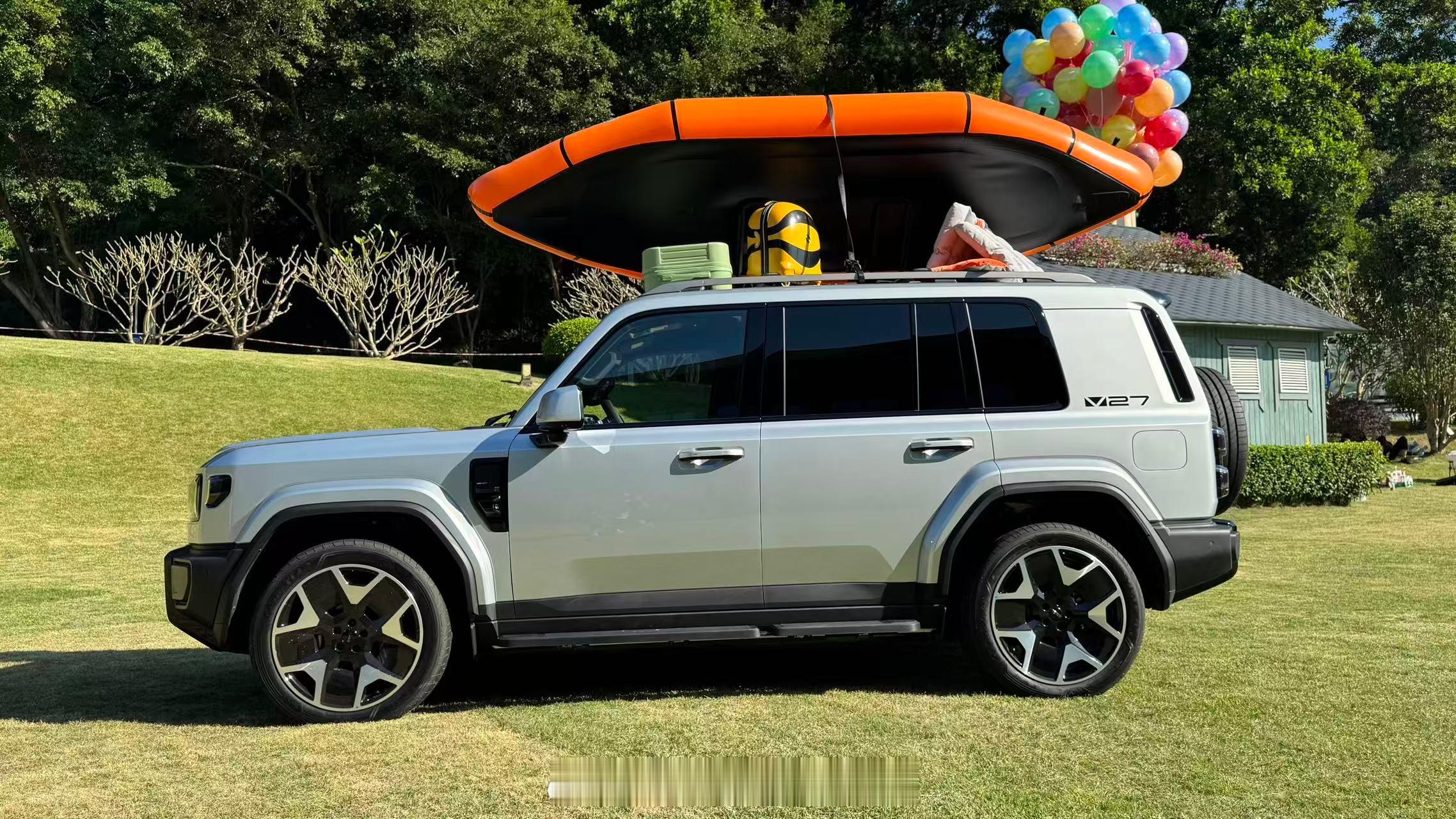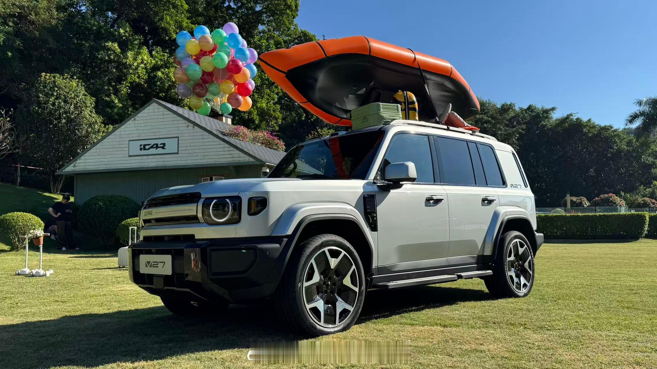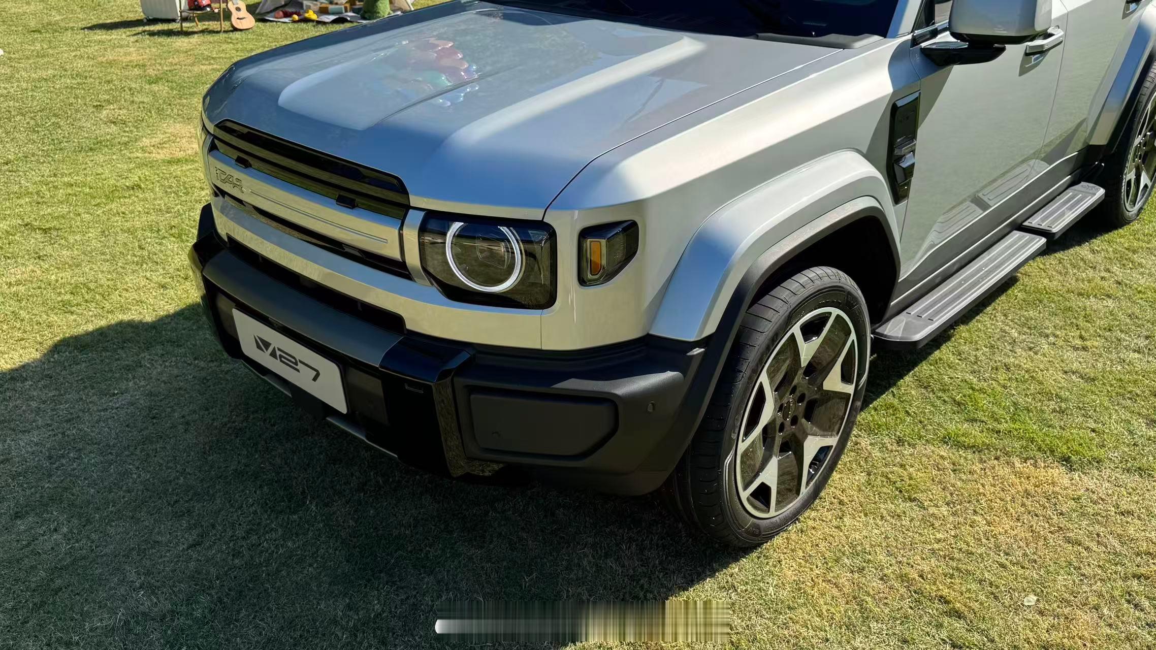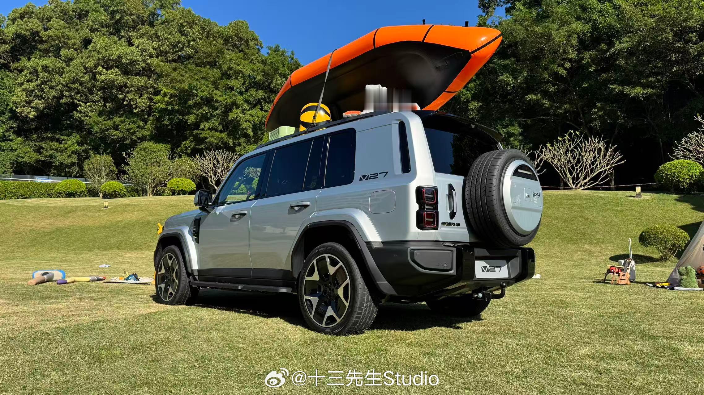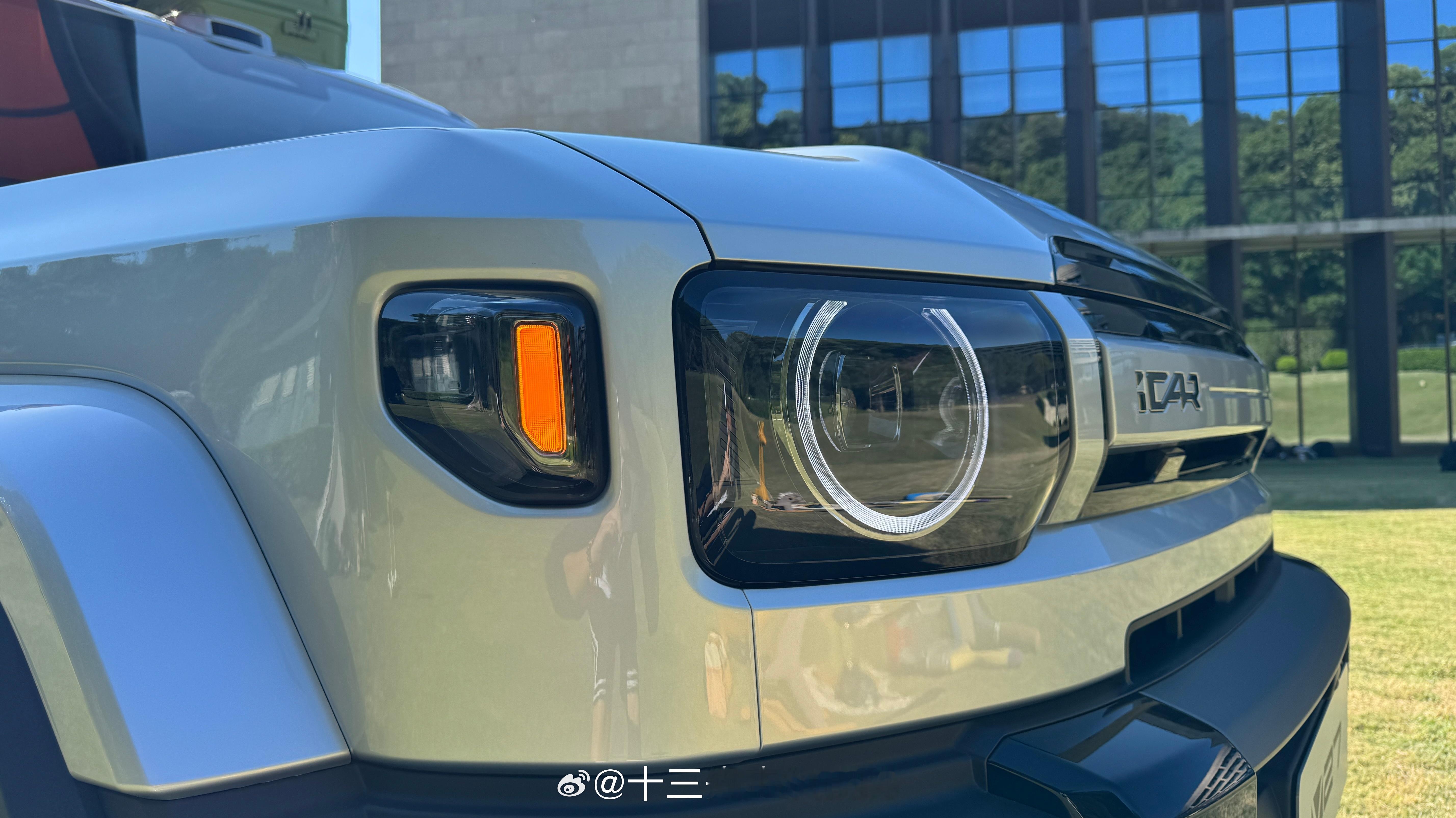 iCar V27的这个造型有的聊~设计师很明确的说致敬了经典短前后悬,长车头,低腰线,这车比例一看就是很顺眼的那种。很多元素都来自当年丰田的LC76,侧面的角灯很有神韵,中网可以拆卸方便更换,而且整体的比例就是按照LC76那种低窗线来的,所以这台车有着非常大的侧窗面积,车内的纵向空间同样非常充裕。不过这台车并没有那么野,螺簧麦弗逊,不带空悬(拍的车不带,最终要看上市),所以想要越野的今后还需要自己去升高,至于为什么不上空悬,是不是中东大佬还是喜欢可靠的螺簧?总之,这是一台不错的心情车,可油可电,设计很有意思,内饰(暂时保密)也很有意思,方盒子这个市场现在有点火,钛7已经月销2万,iCar V27看定价咋样吧~