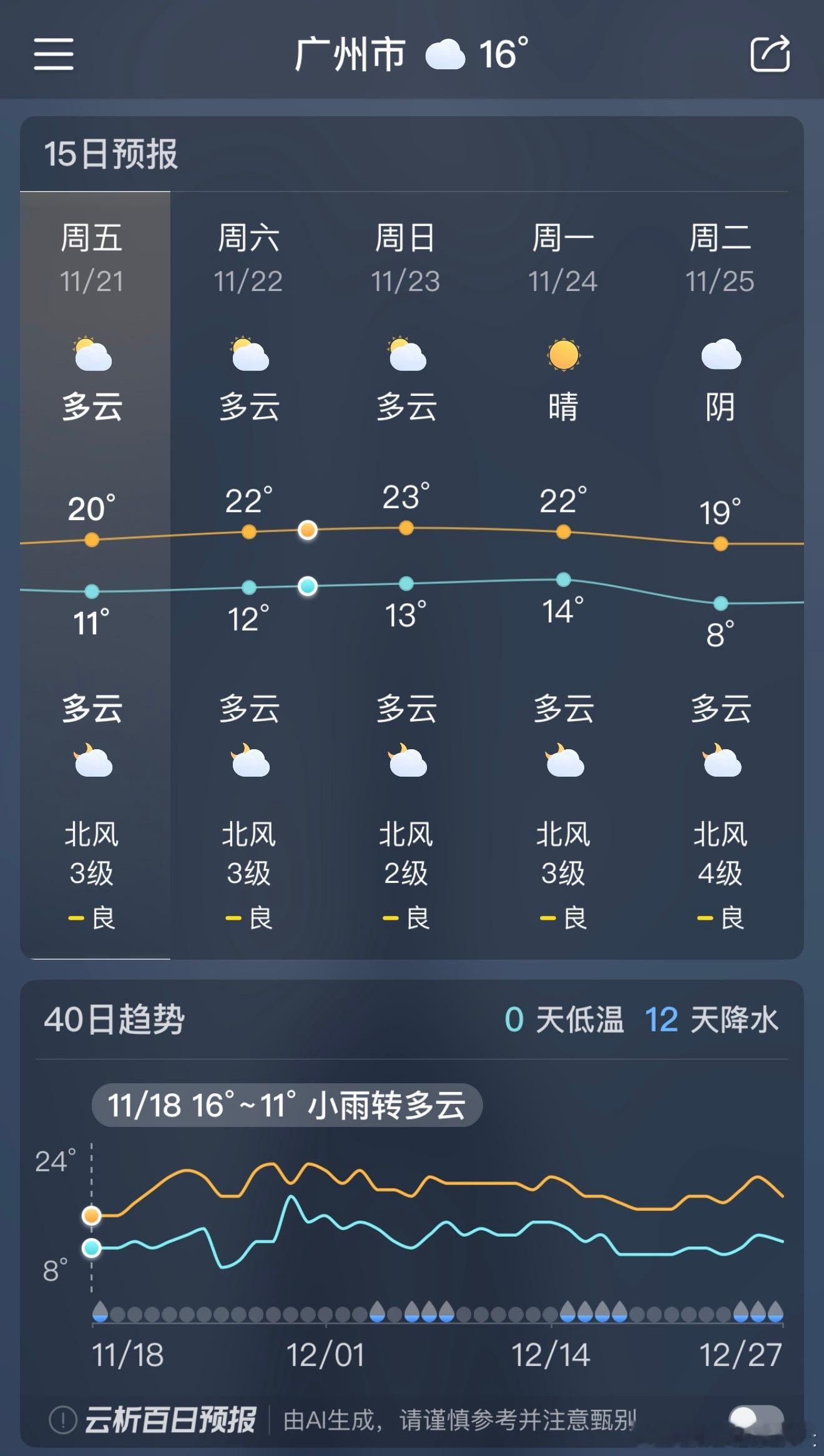 这就是广州的天气,一天给你猛降10来度,直接换季了~不过车展这几天,相对其他更北一点的城市,广州的气温还是很适宜的,穿个普通外套基本就够了。