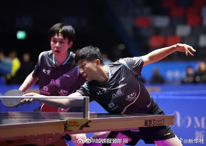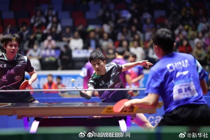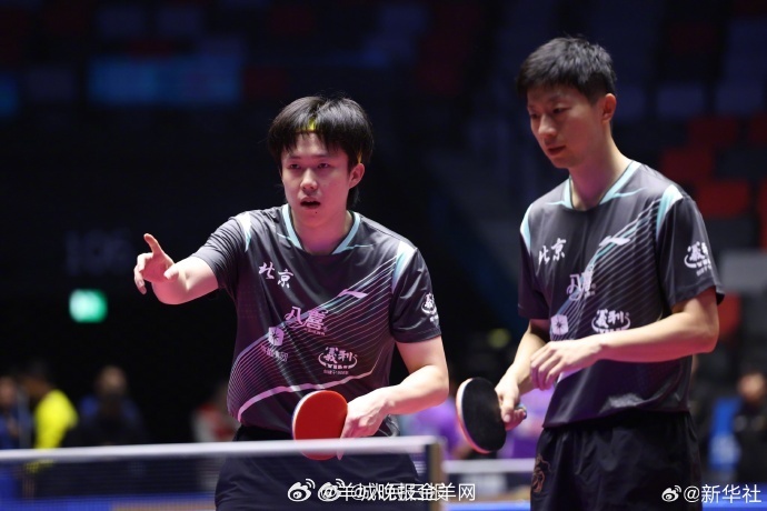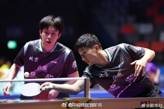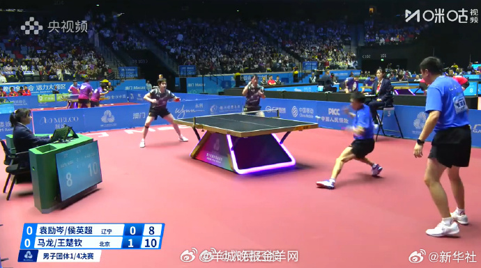 第十五届全运会乒乓球男团1/4决赛,马龙 / 领衔的北京队3:0战胜辽宁队袁励岑/侯英超组合。北京队1:0领先。(新华社)