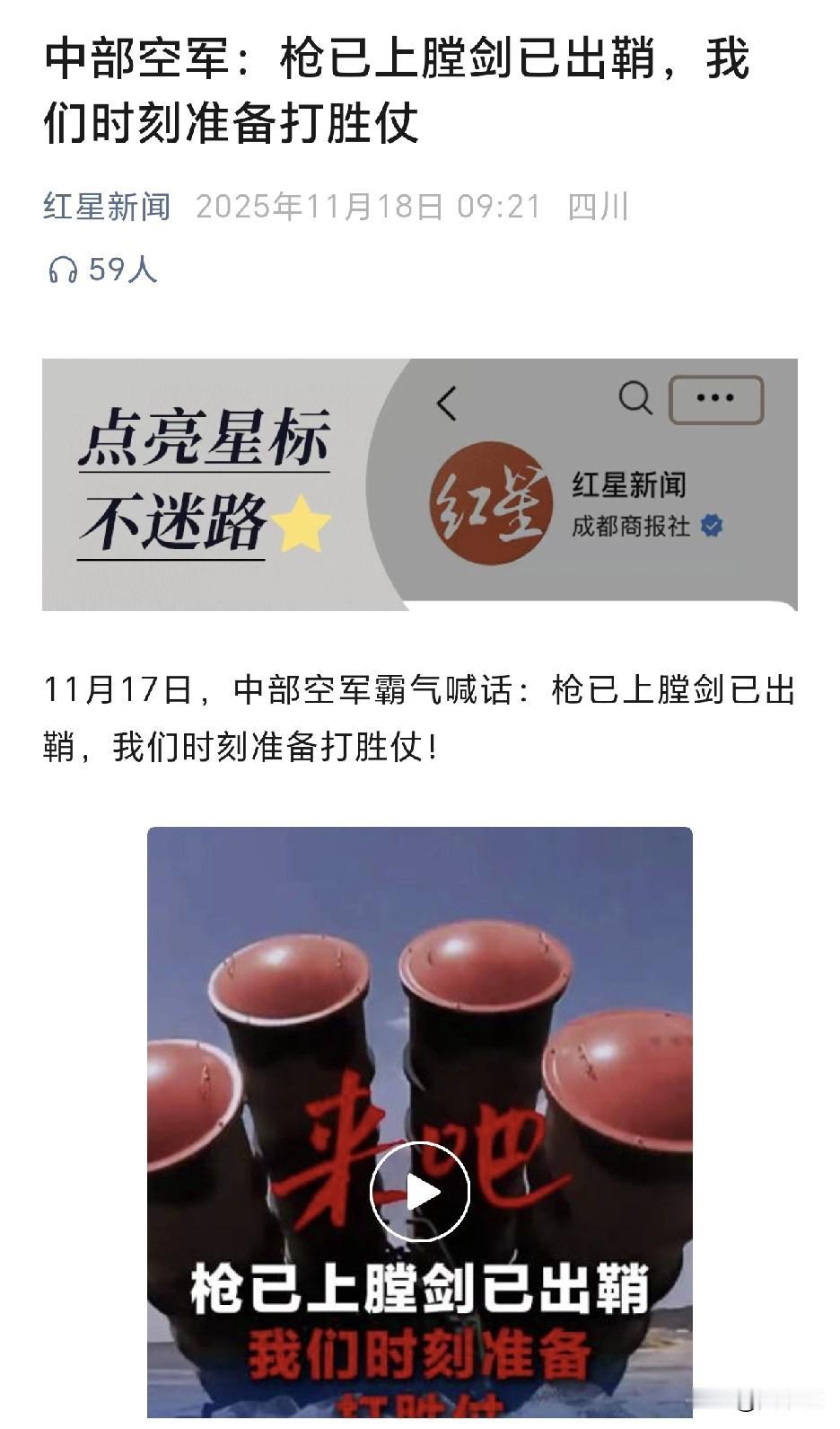 中部空军霸气喊话: 枪已上膛剑已出鞘 我们时刻准备打胜仗!