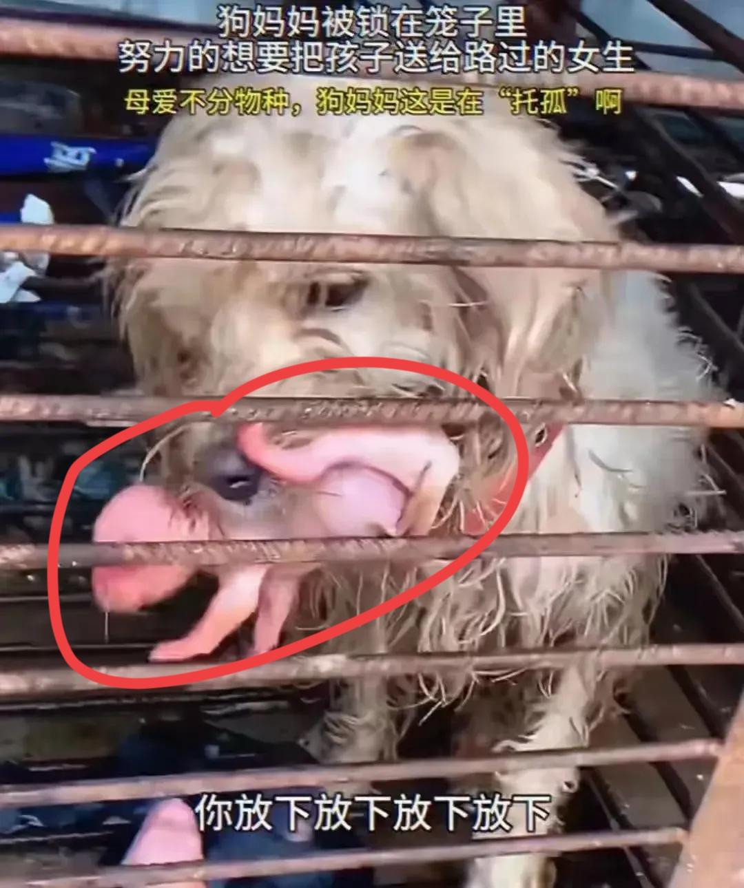泪目了,这天一位小姐姐和闺蜜去菜场买菜,准备回去弄个火锅吃吃,可结果当她们走到卖狗肉地地方,看到了非常凄惨的一幕。 一只狗妈妈居然在铁笼里生了一只小狗,看到小姐姐们走过来,马上叼起来,想要托孤。 那铁笼又脏又小,狗妈妈身上的毛黏着污泥和血迹,刚生完小狗的身子还在微微发抖。它眼里满是恐惧,却硬是撑着最后一点力气,把软乎乎的小狗崽往笼子边推,小脑袋一个劲往小姐姐手的方向凑,喉咙里发出呜呜的声音,听得人心里直发酸。 谁都知道,狗妈妈这是拼了命在求活路啊。母狗生崽本就遭罪,还被关在这种暗无天日的笼子里,随时可能被当成肉卖掉,它心里清楚自己护不住孩子,只能把希望寄托在陌生的好心人身上。 换做谁看到这场景都没法无动于衷,小姐姐和闺蜜当场就红了眼,赶紧跟狗贩商量能不能把这母子俩买下来。狗贩一开始还不乐意,嘴里念叨着“这狗刚生完,肉不值钱”,可架不住两个姑娘软磨硬泡,最后还是松了口。 付了钱打开笼子的那一刻,狗妈妈没有立刻跑,而是先把小狗崽护在怀里舔了舔,确认孩子安全了,才跟着小姐姐慢慢走出菜场。那小心翼翼的样子,仿佛怕稍微一动就会伤到怀里的宝贝,这就是刻在骨子里的母性本能啊,不管自己多狼狈,先想着保护孩子。 想起之前刷到的视频,好多狗狗被拉去狗肉车时都不敢反抗,哪怕被粗暴对待也只是瑟缩着,可一旦涉及到幼崽,再温顺的狗也会拼尽全力。这些毛孩子通人性得很,它们知道谁是真心对自己好,被救之后眼里的泪光,不是懦弱,是终于卸下防备的委屈。 现在越来越多人愿意给流浪动物一个家,很多救助站也在尽力帮这些小生命找归宿。但还是有不少狗狗面临被屠宰的命运,它们可能曾经也是别人的宠物,或是在街头辛苦求生的流浪狗,从来没体会过安稳的生活。 狗狗一辈子短短十几年,认定了一个人就会全心全意陪伴。希望每个生命都能被温柔以待,也希望那些买卖狗肉的行为能少一点,毕竟每只毛孩子都是一条鲜活的生命,都值得被好好爱护。 各位读者你们怎么看?欢迎在评论区讨论。