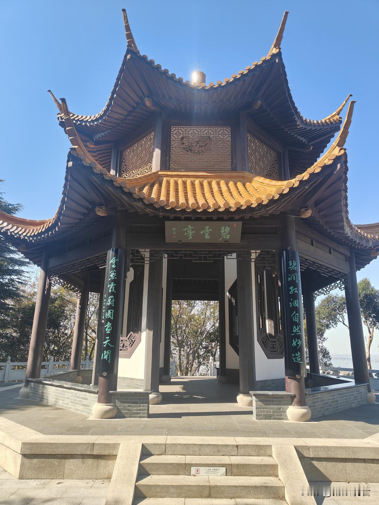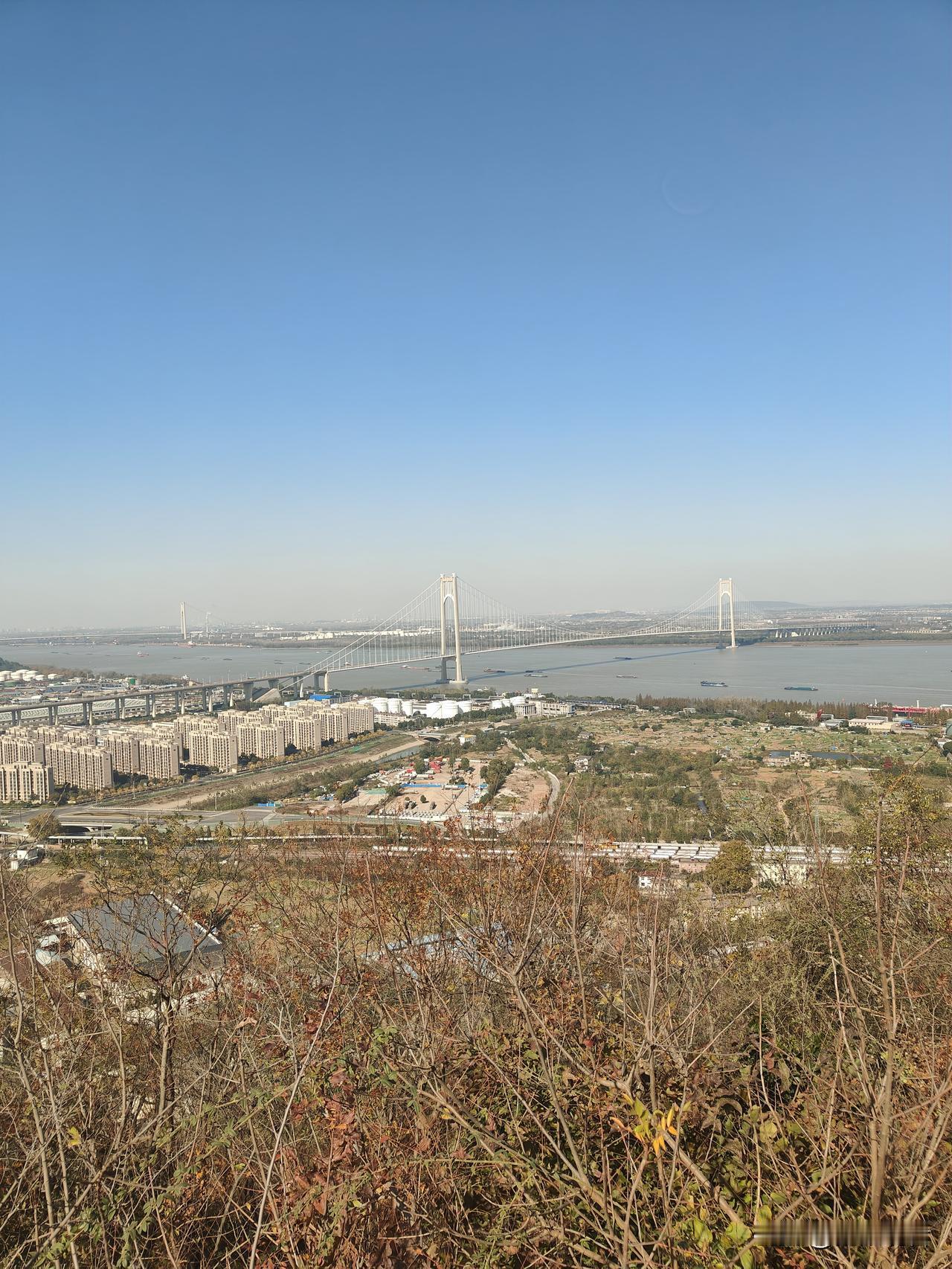 在南京栖霞山顶上凭栏远眺,可见长江在山下蜿蜒奔流,江面上船舶如模型般精巧,尤其是在长江拐弯处,船舶仿佛倾斜着身子滑行 。清晨还能看到朝阳从江面升起,朝霞映照下的江面十分壮观 。