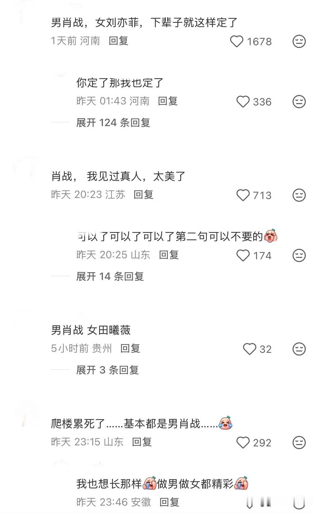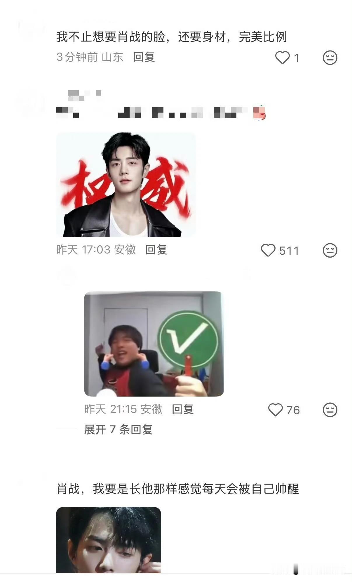 如果你想成为内娱的一张脸,你想成为谁: 评论区整齐划一,这种统一审美的事,只有肖战可以做到[赞]单人推荐100%是肖战,双人男女推荐,路人对女星审美各有各的喜好,但男星无一例外还是肖战。这就是口碑
