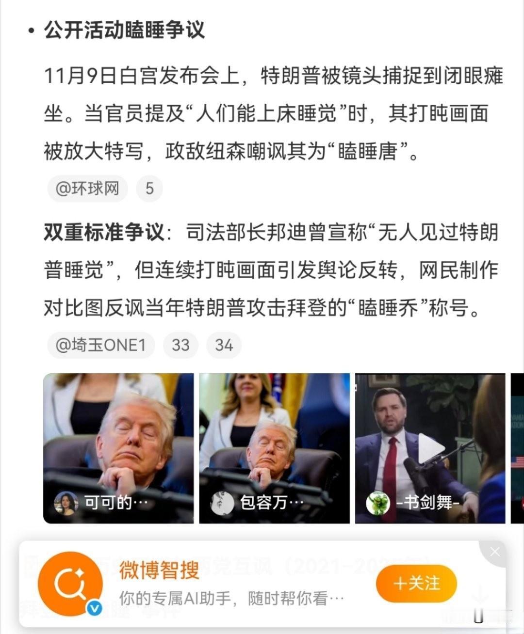 万斯在《汉尼提》电视节目中严肃批评特朗普不爱惜身体。 他说,特朗普坐飞机出差,全程都不睡觉。“去程17小时,回程17小时,他全程清醒,还要求别人也必须保持清醒!” 总统是在“完全不知疲倦地工作”。 事实是有记者拍到老特在白宫发布会上是这个样子……