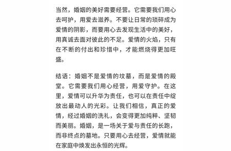 但从整体来看,主要可以包括以下几个方面: 情感的伴侣关系:婚姻提供...