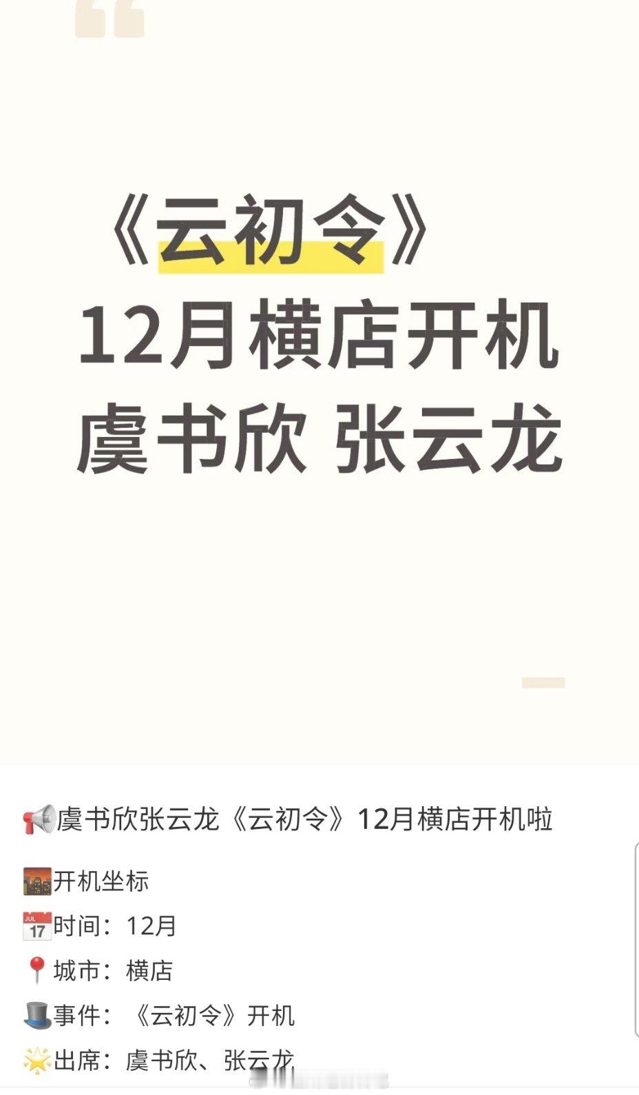 《云初令》开通官博了~这部剧的主演在传虞书欣和张云龙。她还真没事儿啊?暂定12月开机 爱奇艺:不抛弃不放弃