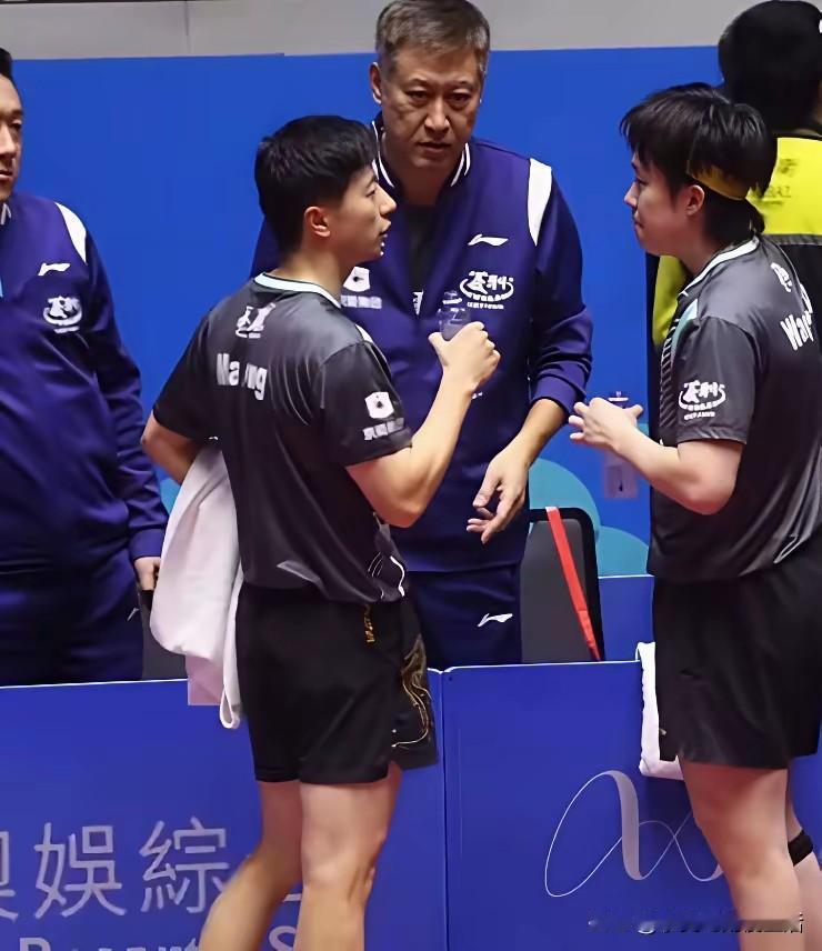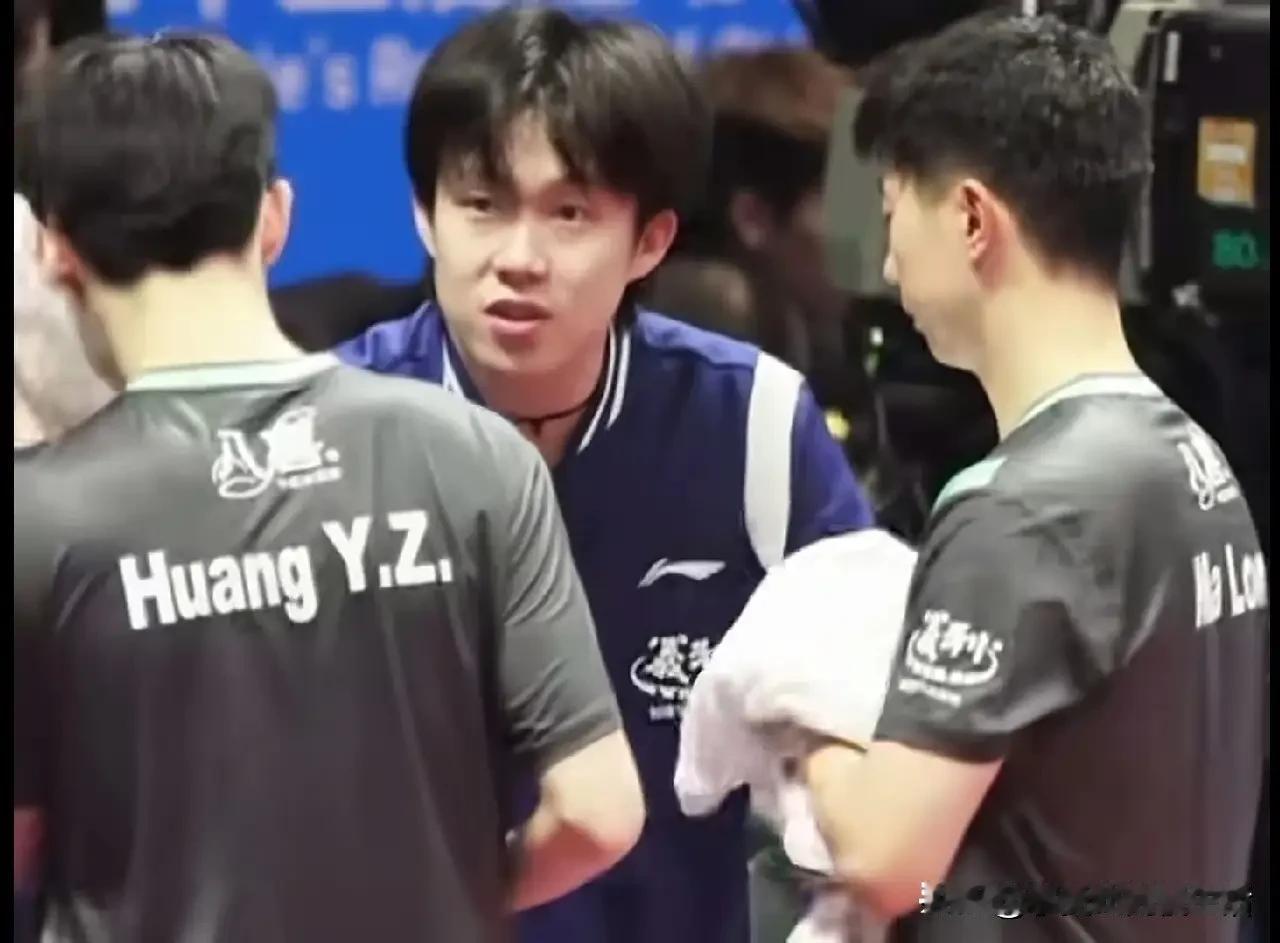 黄友政真得跟王楚钦学学——不耻下问。 黄友政跟马龙配双打,马龙局间休息,一句话