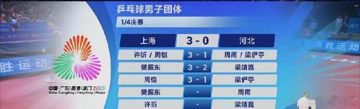 11月18日,全运会乒乓球🏓男团淘汰赛,樊振东领军上海队3:0战胜河北队!此役,上海队每场赢得比较艰辛,第一场许昕/周恺3:1周雨/梁俨佇还属正常;第二场樊振东vs梁靖崑打满了5局,最终樊振东3:2梁靖崑,为上海队拿下第二分;第三场周恺3:1梁俨佇,其中最后一局打到了16:14的高分。这说明,双方打的都很顽强,而上海队在关键分的处理上更坚决更胜一筹。上海队夺冠最有力的竞争对手北京队3:0轻松战胜辽宁队。今天北京队进行了变阵,实力最弱的黄友政改为一单,王楚钦变成三单并和马龙组合男双。从比赛结果来看,北京队变阵很成功。北京队对阵上海队,会不会沿用今天的阵局?上海该如何决策?进入淘汰赛,每一场都很重要,希望上海队迅速调整状态,能够赢下接下来的比赛,上海队加油