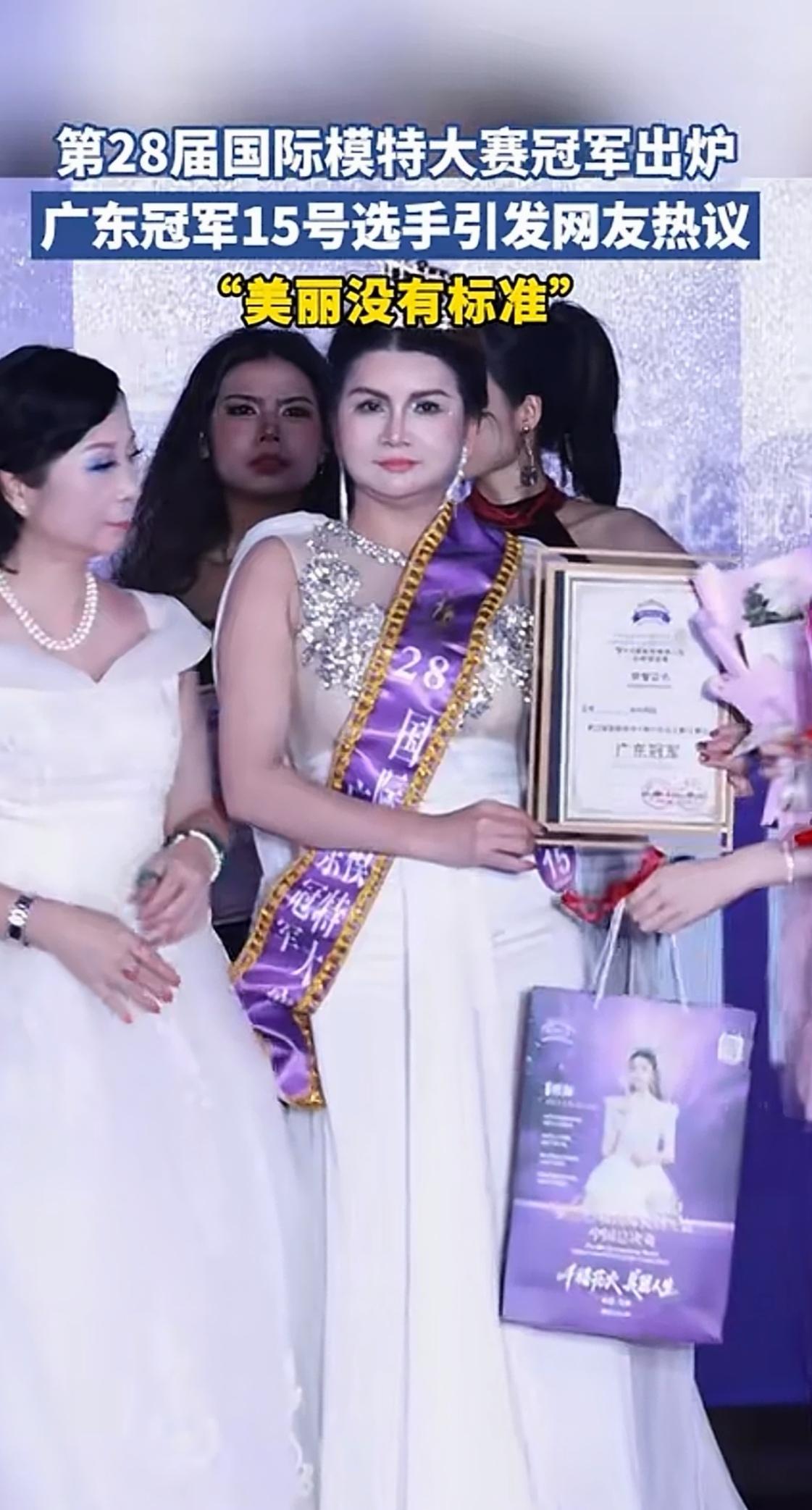 现在选美越来越奇葩!前有辽宁选美冠军张倩,现在第28届国际模特大赛广东赛区冠军又引发争议啦!这次冠军是位岁数偏大的姐姐,现场她皇冠配礼服气场足,但总感觉哪里不对,现在选美都这标准了吗? 这届广东赛区冠军的争议后续会怎样,大家拭目以待吧。