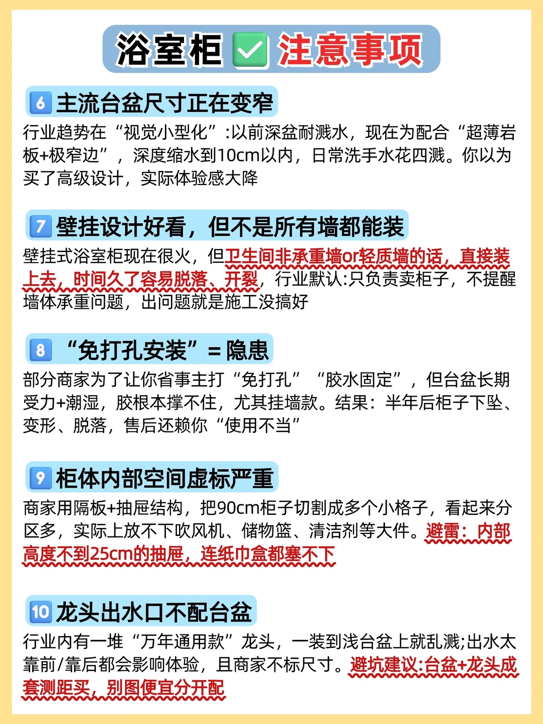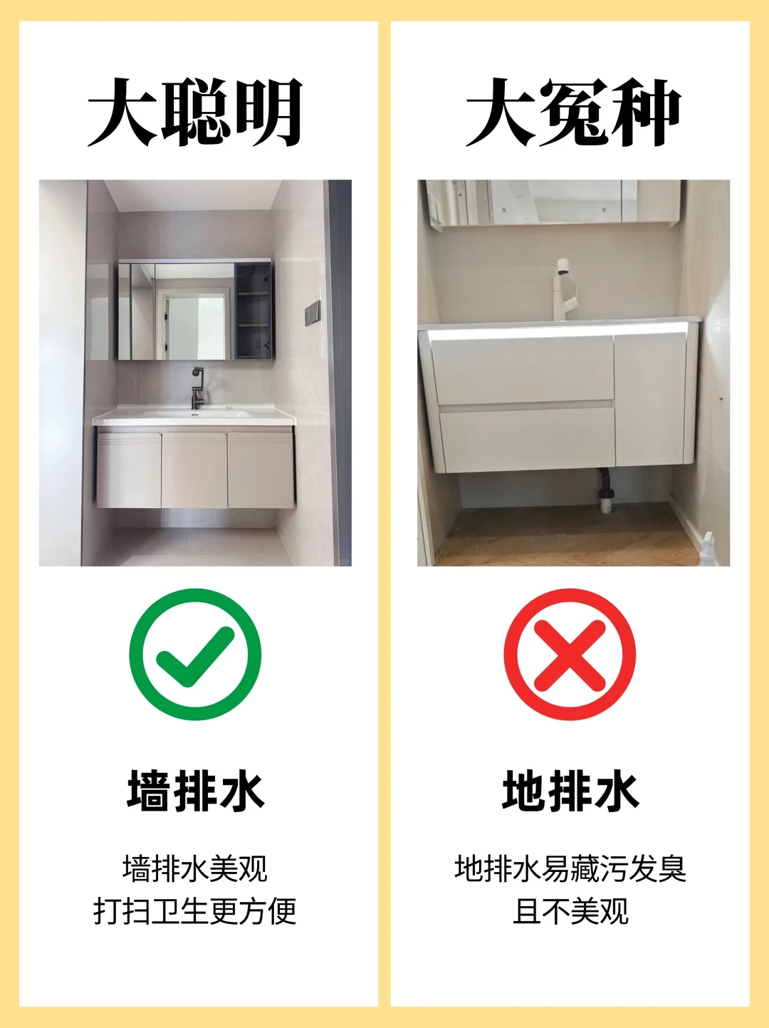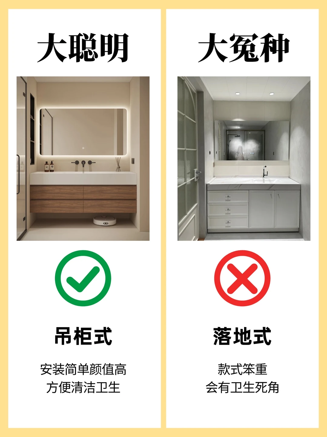 ⭕️壁挂式浴室柜不适合卫生间非承重墙or轻质墙,时间久了容易脱落、开裂
