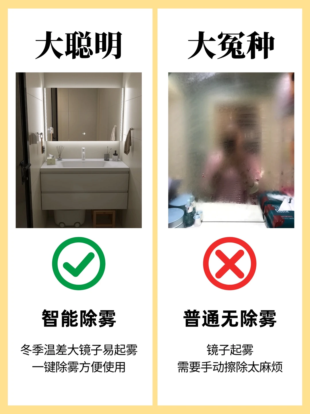 3️⃣智能除雾:冬季温差大镜子易起雾,一键除雾方便使用