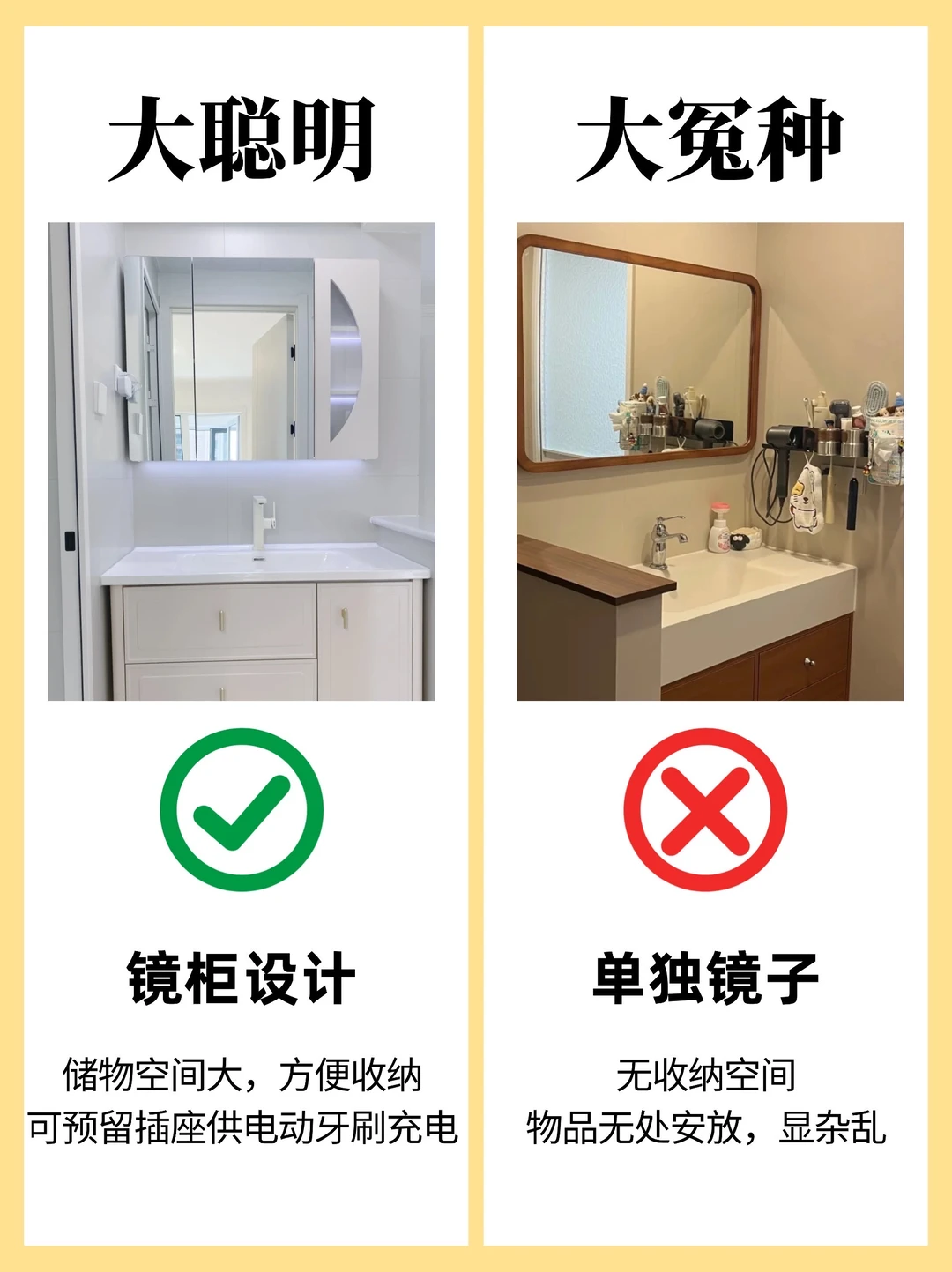2️⃣镜柜设计 :储物空间大,方便收纳,可预留插座供电动牙刷充电