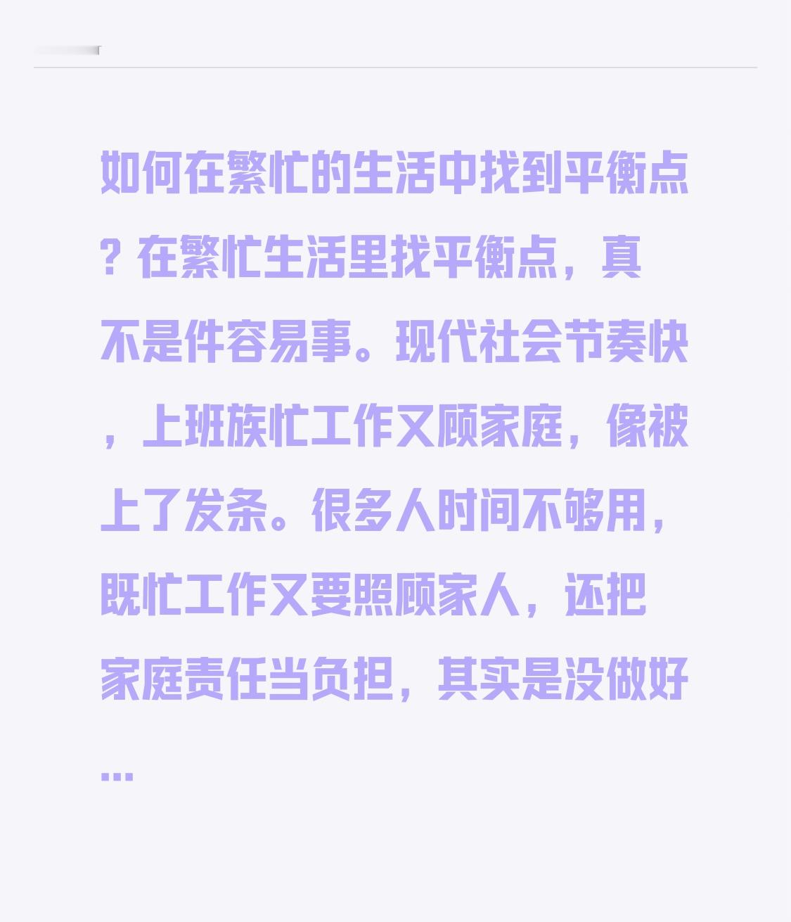 如何在繁忙的生活中找到平衡点?在繁忙生活里找平衡点,真不是件容易事。...