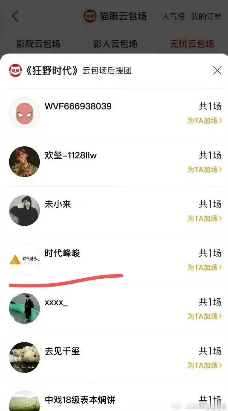时代峰峻给四字易烊千玺的电影《狂野时代》包场啦好扣啊就包了一场