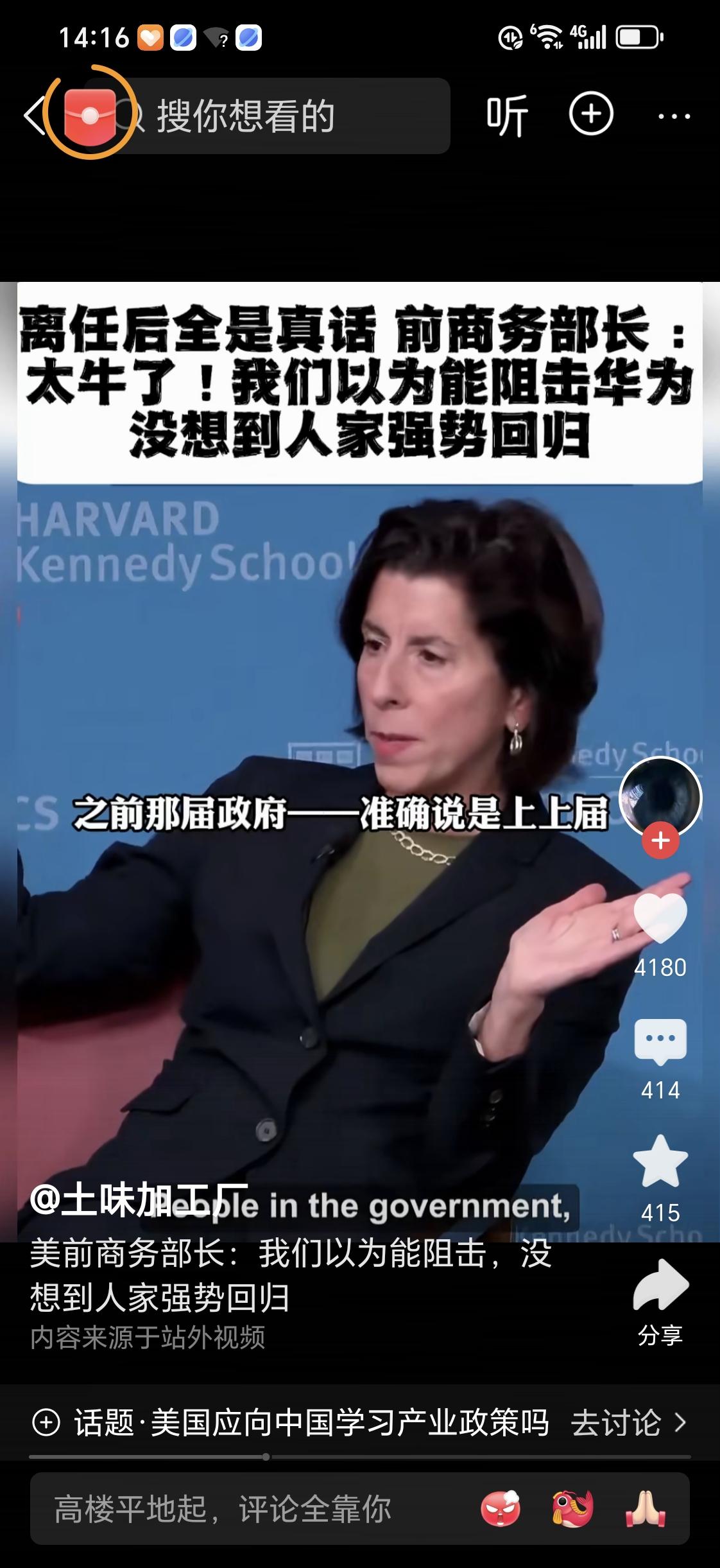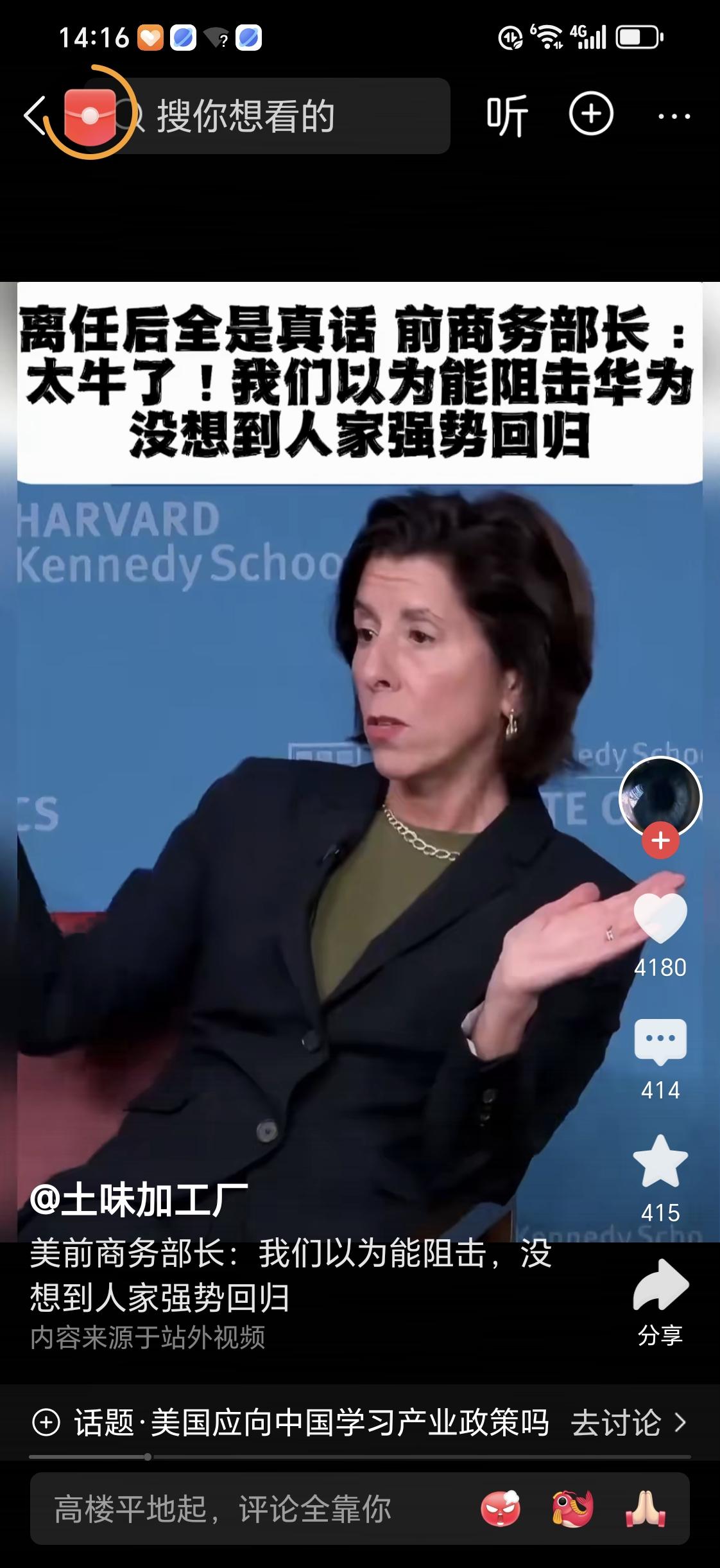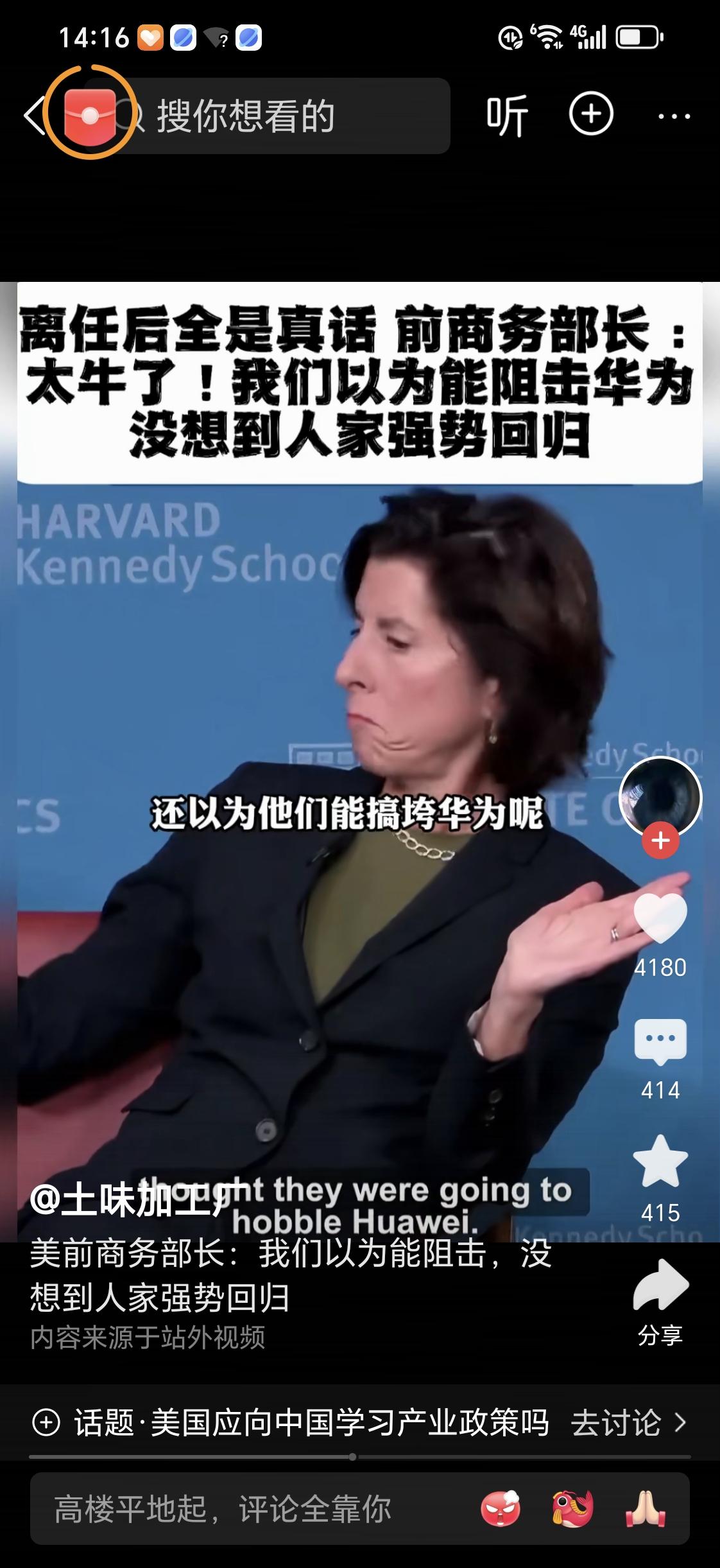 美前部长说:“上届政府总以为通过打压,围堵,封锁华为可以彻底让中国科技企业屈服,结果呢?毫无作用,阻击反而让华为实现了芯片快速突破,这就是中国实力和速度”。这是这位部长退休了说了实话,说了真话,在位时他绝对不敢说,毕竟那是民主党的天!或许到今天她才知道中国科技企业崛起不是一天两天的事,是综合国力的崛起,更是实力的崛起!(图片来自网络侵删)
