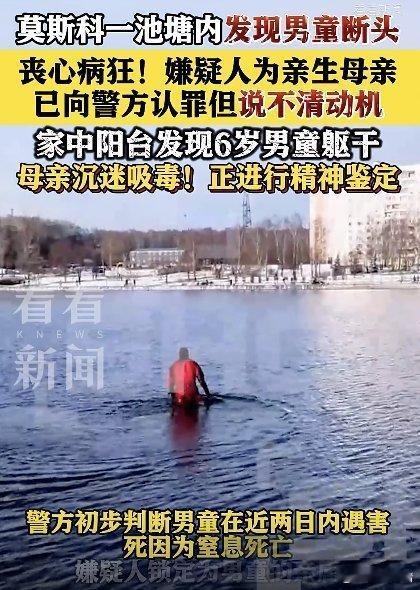 《莫斯科公园池塘惊现男童断头,阳台上发现男童躯干遗骸_中华网》莫斯科公园池塘惊现男童断头。当地时间11月16日,俄罗斯莫斯科东部的一处池塘内,有工人发现了一个装有男童头部遗骸的紫色书包。莫斯科警方和地区总检察院迅速介入调查,并对该池塘展开打捞工作。经法医初步确定,男童死亡的时