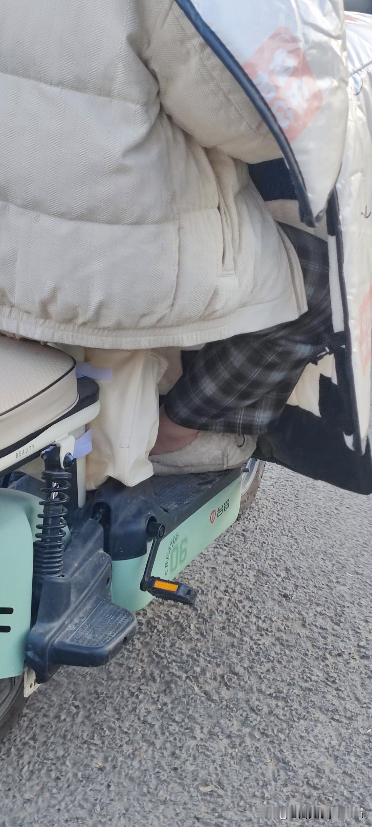 济南这个温度,现在外边七度, 这个骑电动车的姑娘,上边穿着羽绒服,下边穿着拖鞋,也没穿袜子,露着脚后跟,我一直感觉她冷。 大概她自己不冷吧。