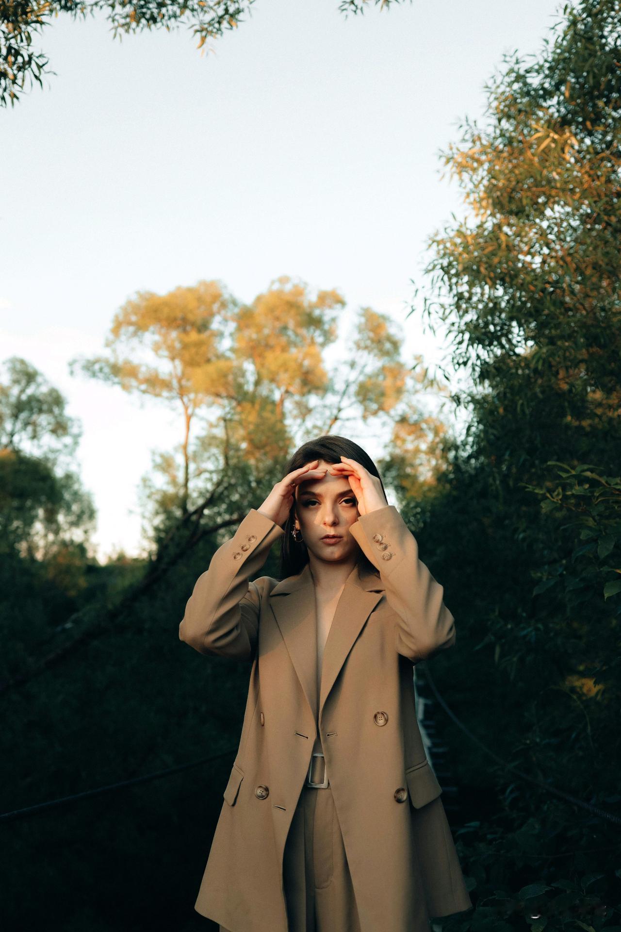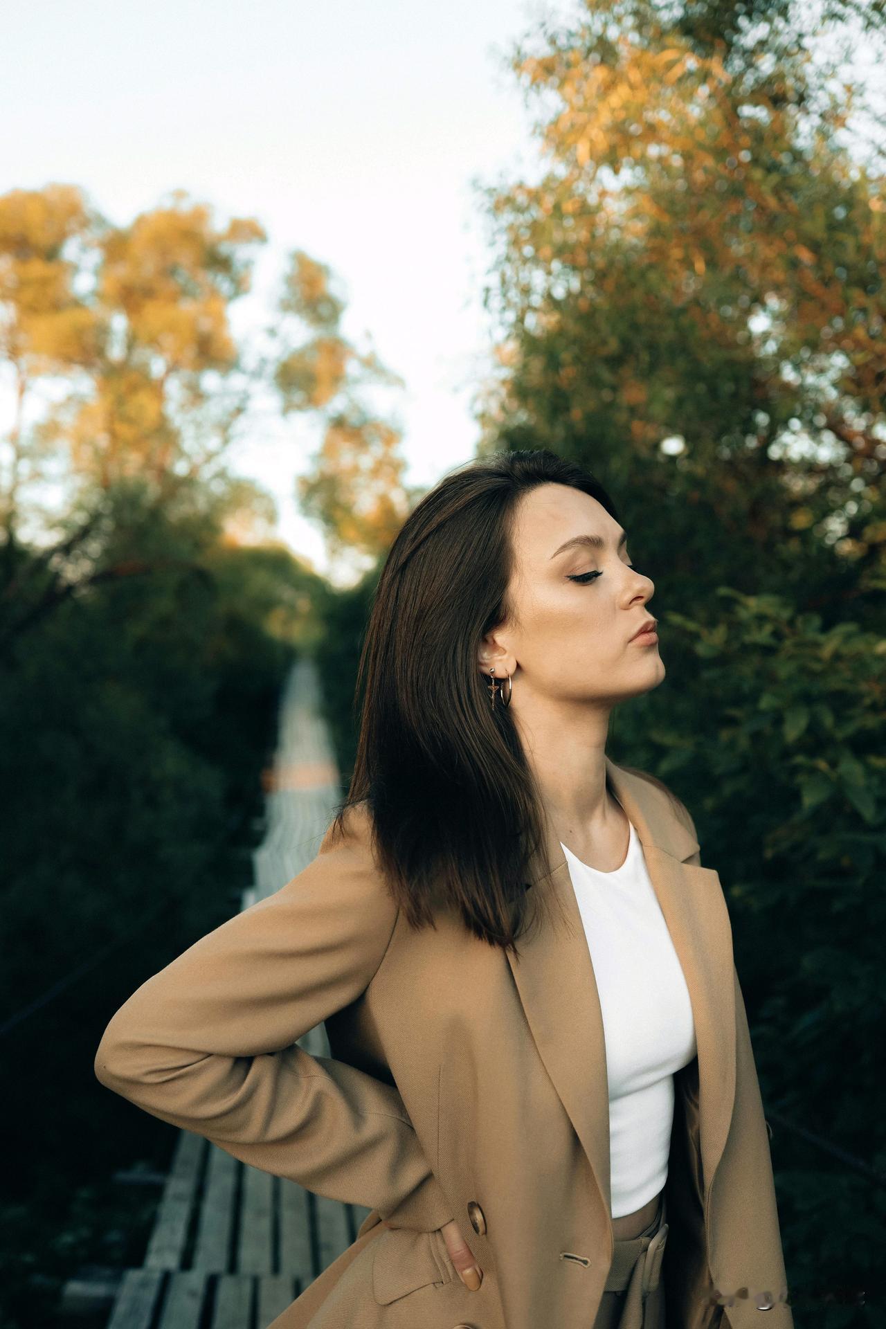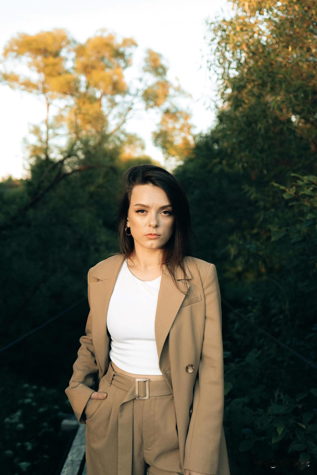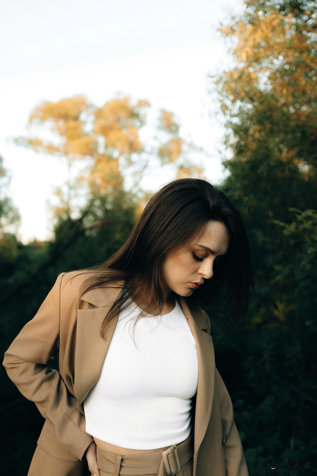 卡其色西装裹着气质美女松弛的气场,白衫露的腰线是温柔的破绽。指尖掠过额发时,耳圈晃着细碎的光,连风都裹着树影的暖意。 她站在木桥的光影里,手插兜的姿态有点漫不经心,垂眸时发梢蹭过她肩线——是利落里掺了点柔软,又像是把秋阳揉进了西装的褶皱。卡其色穿搭 卡其色风衣穿搭