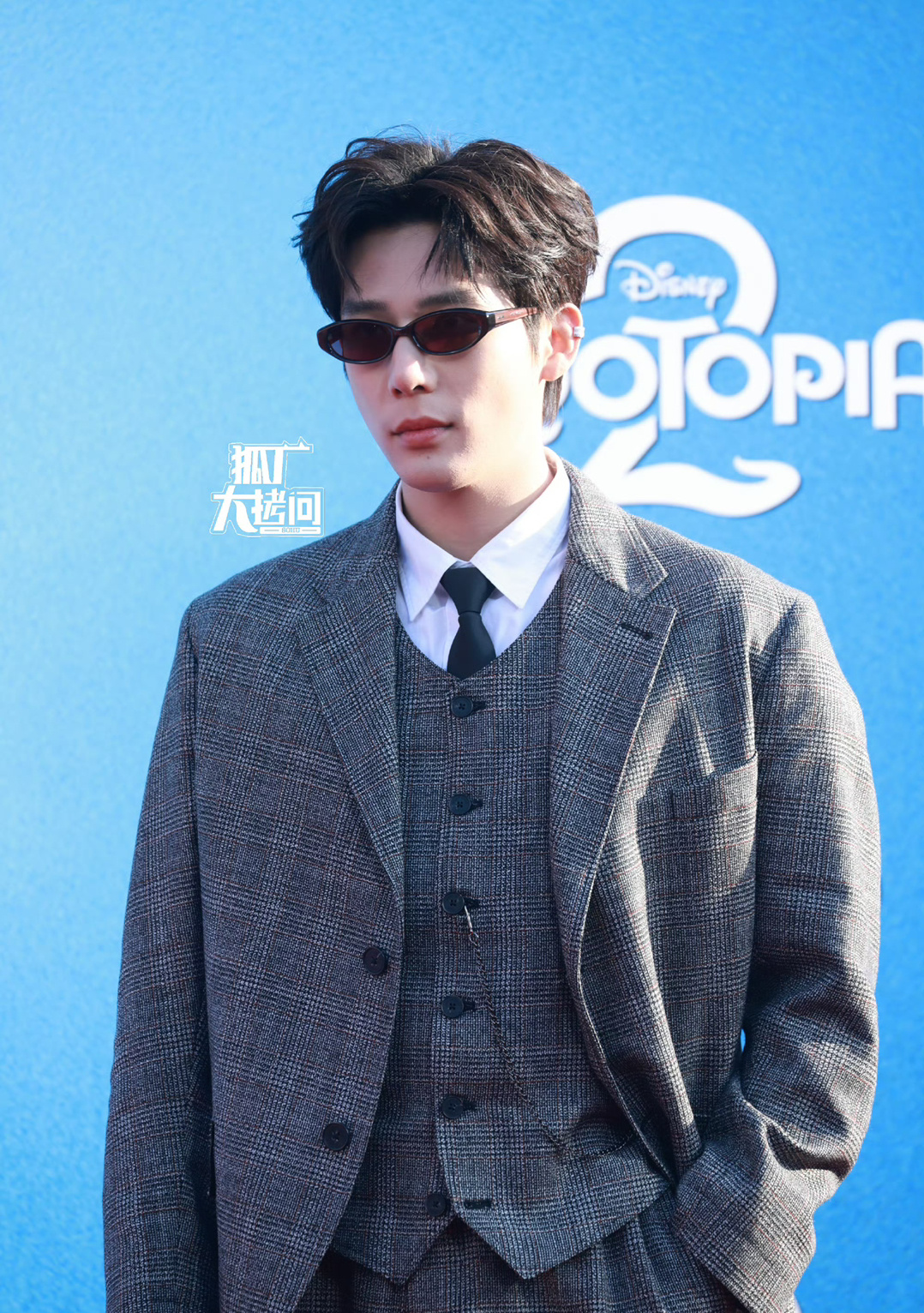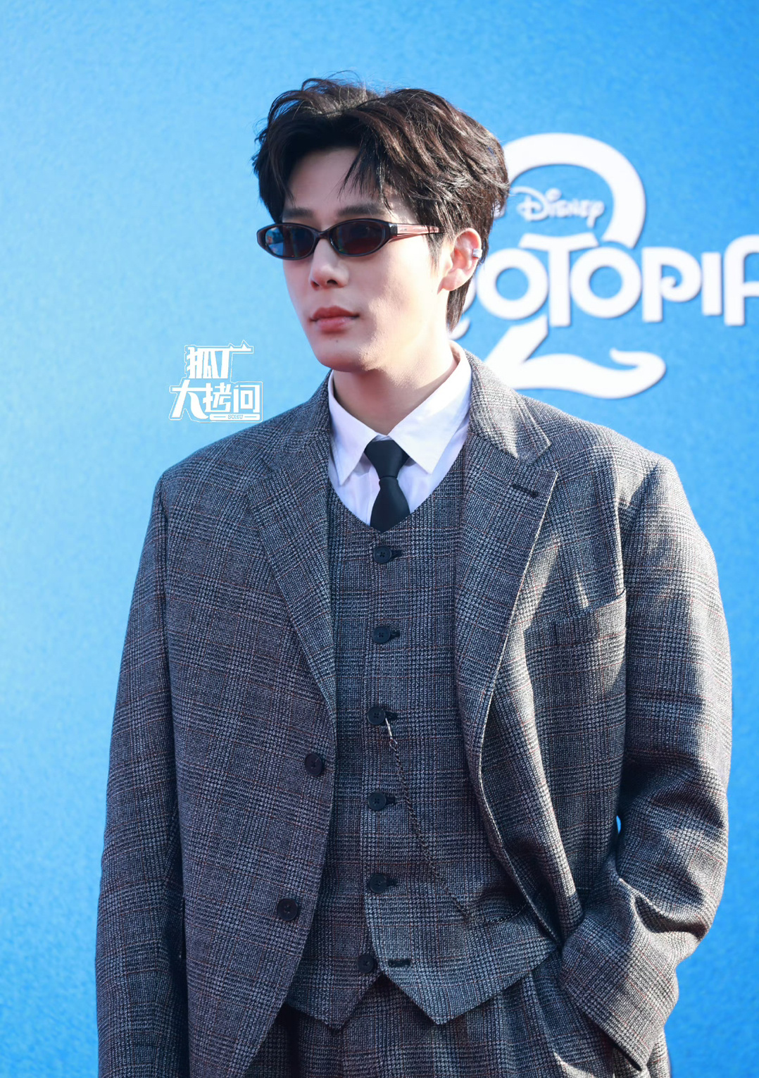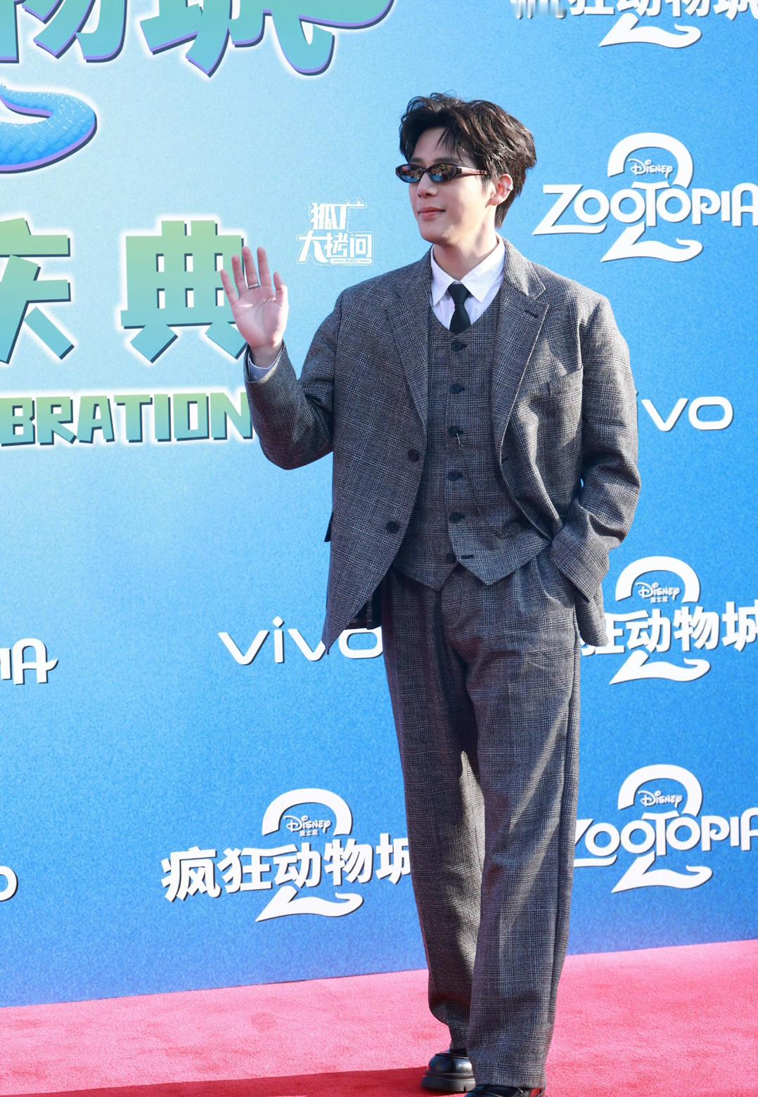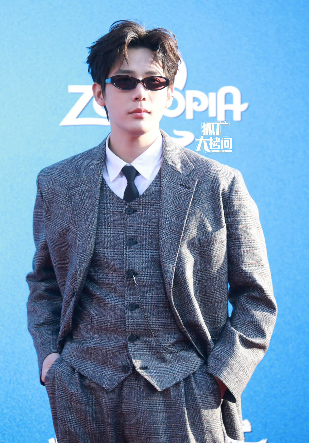 王安宇《疯狂动物城2》红毯生图,格纹西装贵公子