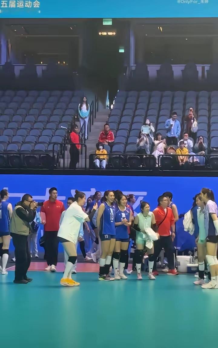 11月18日,全场72扣33中4拦网得到37分的朱婷,以她的实力和拼劲得到了输球一方球员的尊敬和崇拜,这不,比赛一结束,北京女排的全体球员就呼啦啦一起来找朱婷合影了,董宇含、邹佳琪这些现役女排球员都甜甜喊着迎上来的“朱婷姐”,然后排着队喜悦地和朱婷合影,场面十分热烈十分温馨。这一幕,恰巧被从训练馆走过去的江苏女排看到了,吴梦洁十分羡慕地看着也想上前合影,但最终还是走开了。这就是技术高超且为人低调谦逊广受女排球员喜欢的朱婷!然而,如今的她已经快31岁了,当真是看她打球看一场就少一场了!球迷们请珍惜有朱婷打球的时光吧!祝福她健健康康快快乐乐!