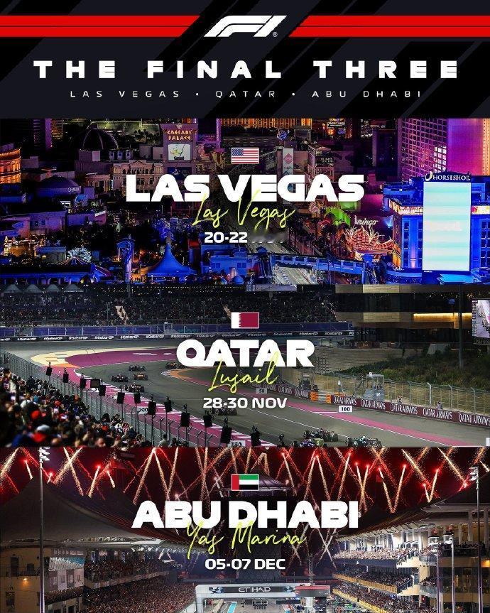 赛车:2025F1赛季将以三连赛背靠背结束 拉斯维加斯 ↓ 卡塔尔 ↓ 阿布扎比