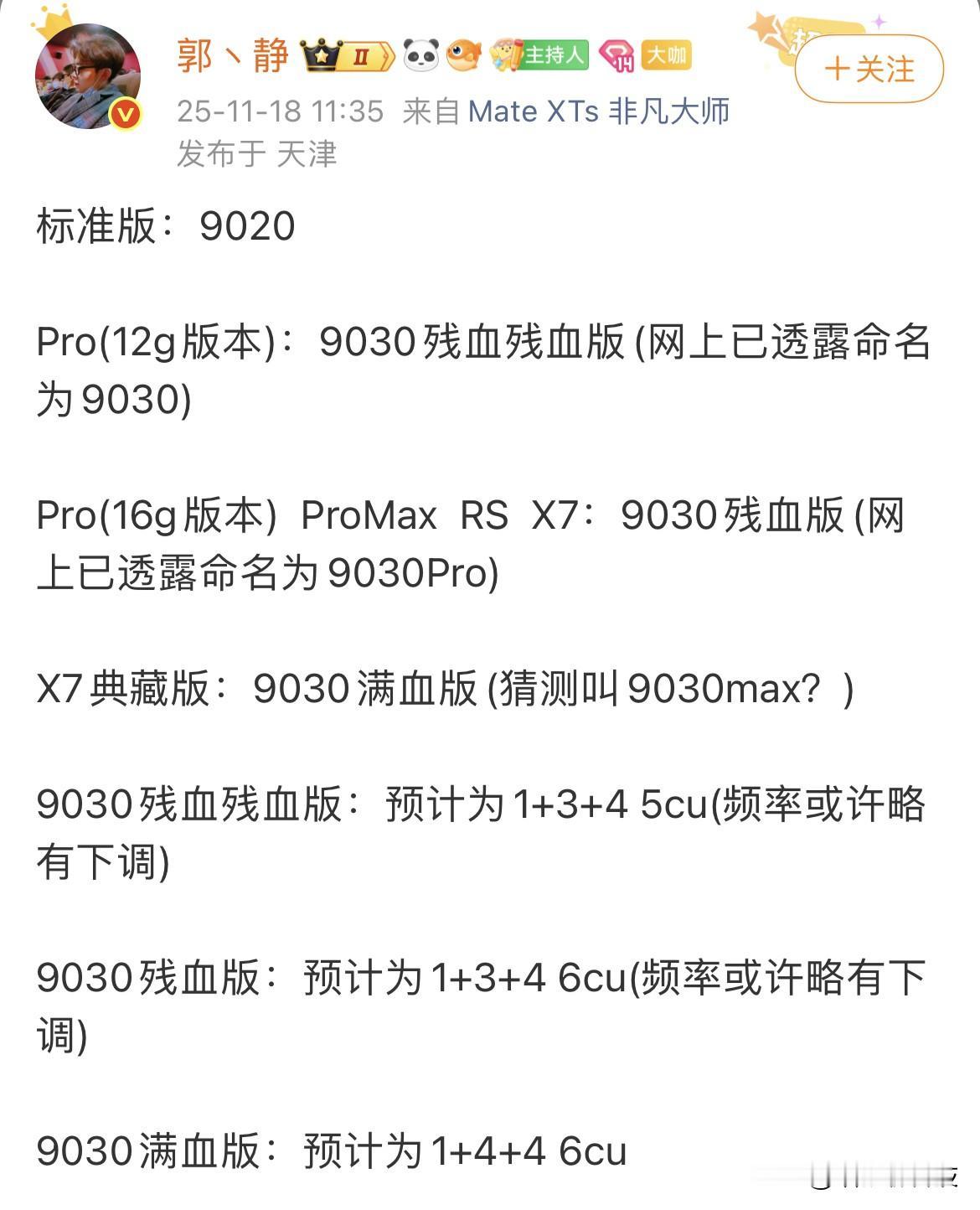 这麒麟9030芯片版本也太夸张了吧? 据说mate80系列将会搭载4款芯片版本,其中标准版依旧采用麒麟9020,而其他新机则都是搭载麒麟9030。 mate 80 Pro将会采用 12G运存+kirin9030芯片和16G运存+kirin9030 Pro芯片两个版本; mate 80 Pro max 和 RS则是全面搭载 kirin9030 Pro芯片; 而X7则是直接 kirin9030 Pro max 满血版。 其中kirin9030 Pro较kirin9020性能提升30%; 而Kirin9030 Pro MAX较kirin9020提升40%。 只能说华为这真是把芯片成功率利用到极致了!