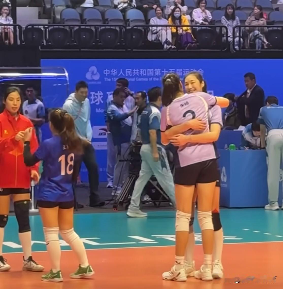 破防了[流泪][流泪]看到朱婷赛后一瘸一拐走路,真的非常心疼啊[流泪][流泪]走路的时候,腿还有点软,然后还招呼队友们一起来场上拍一张大合照,拍完大合照去紧紧拥抱着韩雯雅,跟队友王思敏、韩雯雅、领队一块拍合影!最后走到看台上,跟来到现场的小黄人再拍一张大合照!拍完之后,北京女排又排着队一个个来拍照!在场上累个半死,比赛结束了还得照顾周到身边人的善意喜爱,巨星可真的一点都不好当[加油][加油][加油]